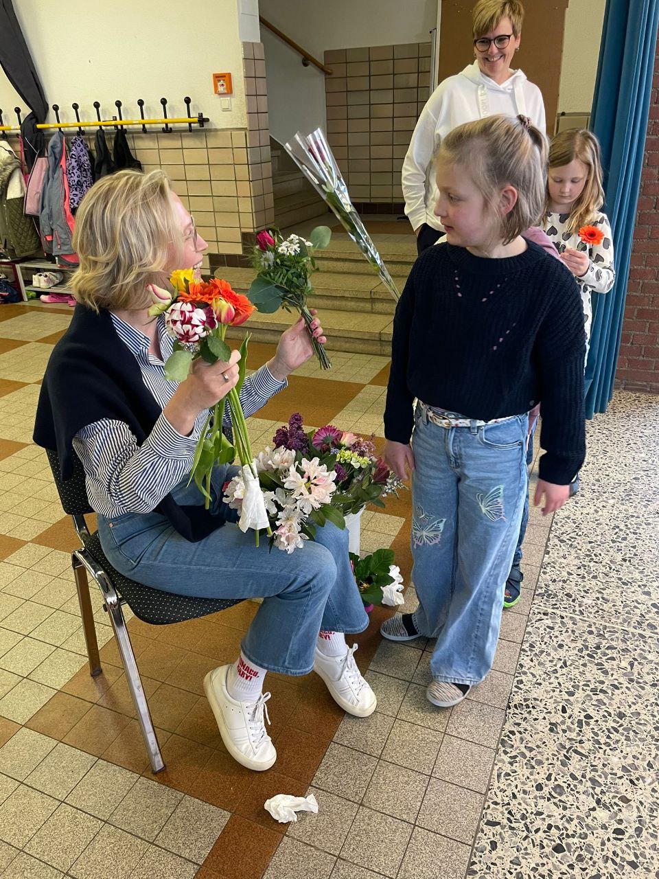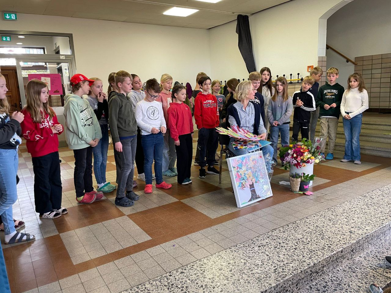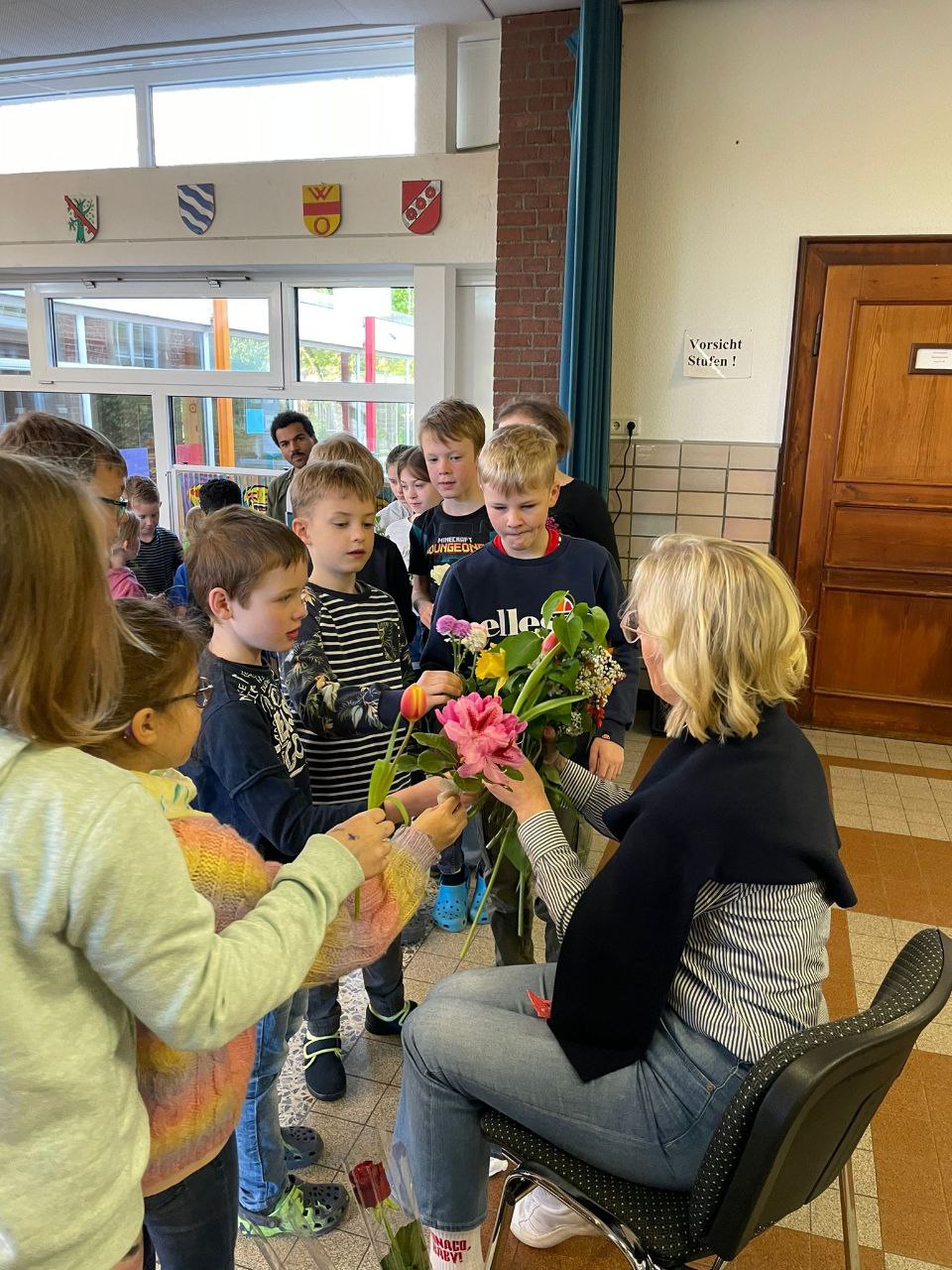 An unserer Schule gab es einen ganz besonderen Anlass zum Feiern: Wir haben den Geburtstag von Frau Leuchten gefeiert! Die Kinder haben diesen Tag mit großer Begeisterung und Kreativität gestaltet. Sie haben nicht nur Geschenke überreicht, sondern auch mit Liedern und Tänzen für eine fröhliche Stimmung gesorgt. Die überreichten Blumen brachten Farbe und Freude in unsere Feier, und das Buch mit Glückwünschen und Fotos der Kinder ist ein wertvolles Andenken, das Frau Leuchten sicherlich noch lange in Ehren halten wird.