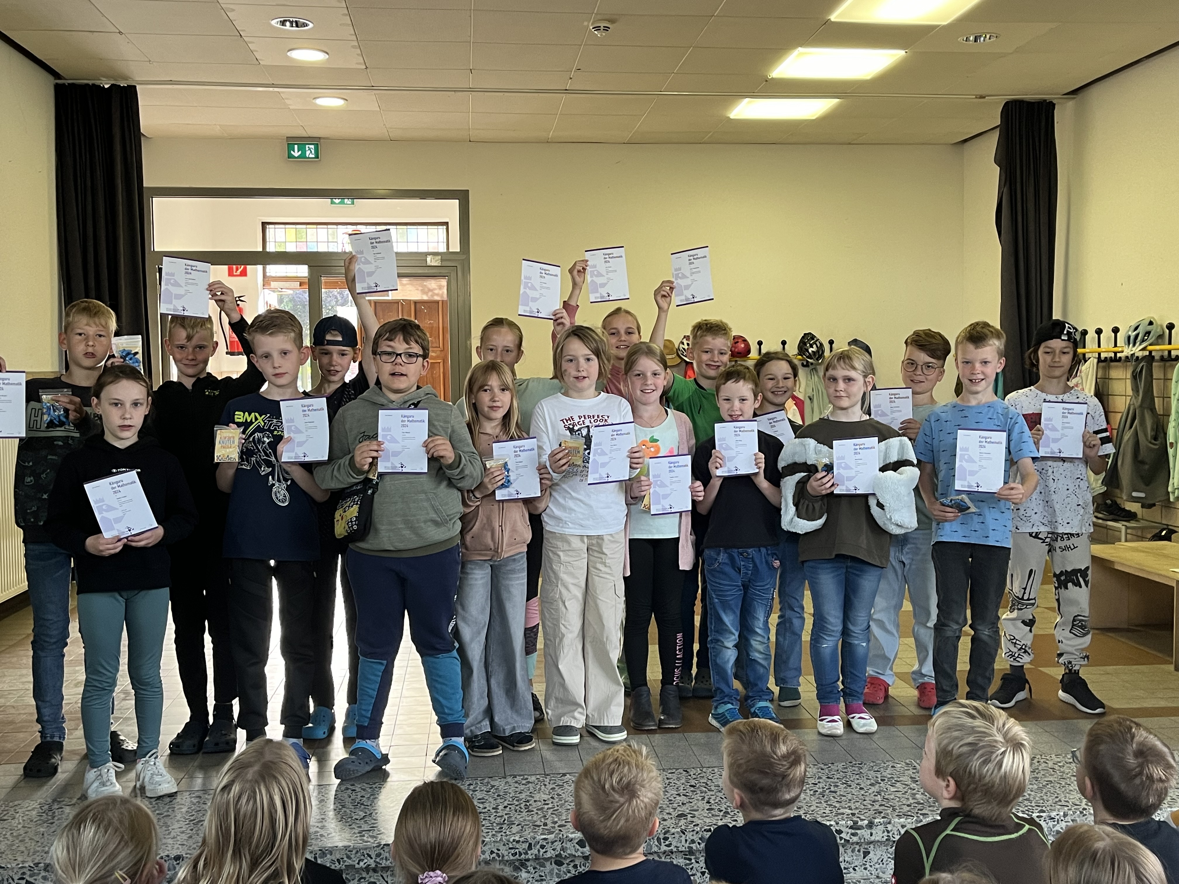 Urkunden für den Känguruwettbewerb: Die Klasse 3 hat bei dem diesjährigen Känguruwettbewerb teilgenommen und auch dafür entsprechende Urkunden erhalten. Eure mathematischen Fähigkeiten und euer Durchhaltevermögen sind wirklich bemerkenswert. Herzlichen Glückwunsch zu euren Erfolgen!