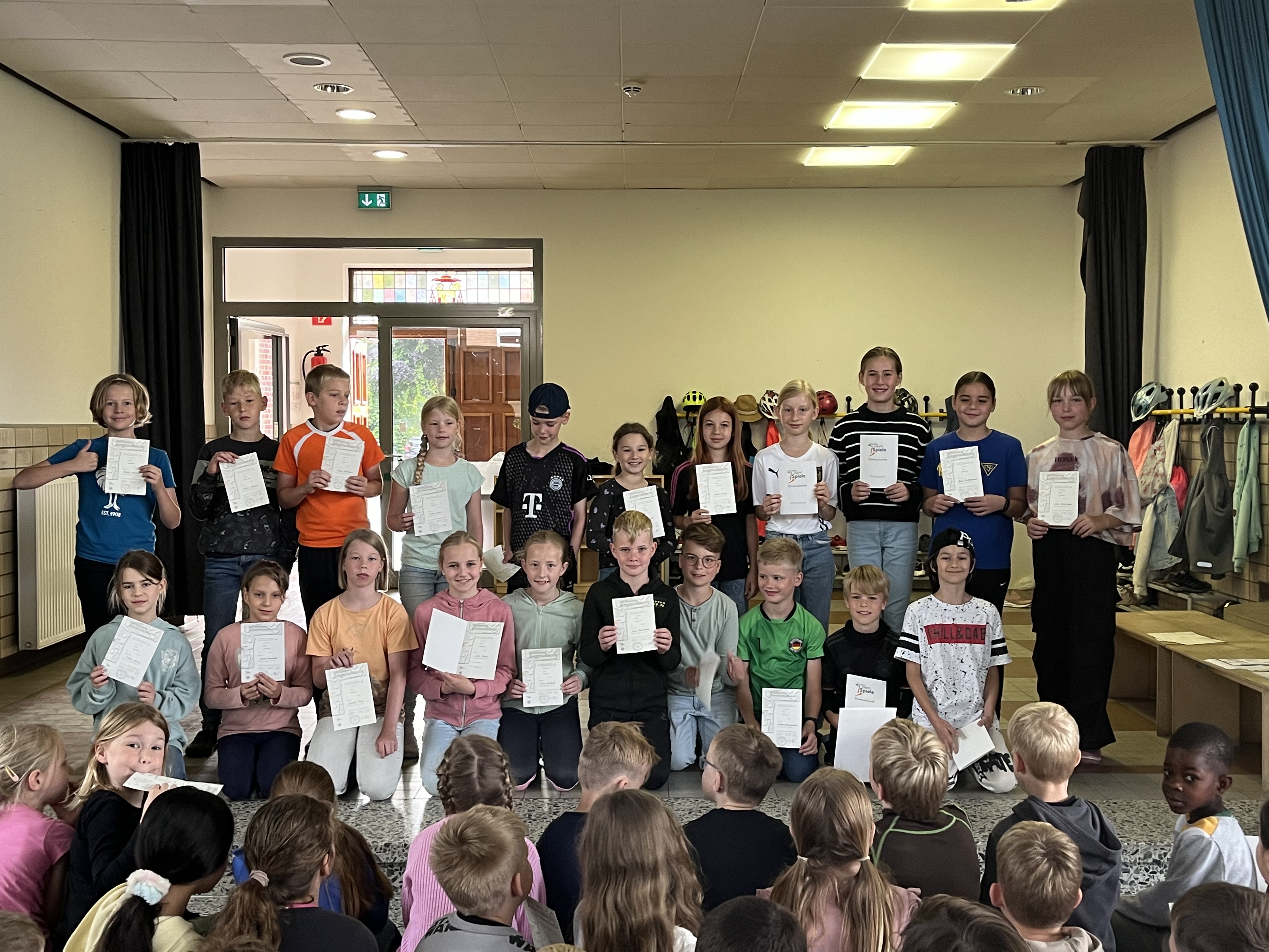 Urkunden für das Deutsche Sportabzeichen: Alle Klassen haben für ihre sportlichen Leistungen die jeweiligen Urkunden für das Deutsche Sportabzeichen verliehen bekommen. Ein großes Lob an alle Teilnehmer:innen!