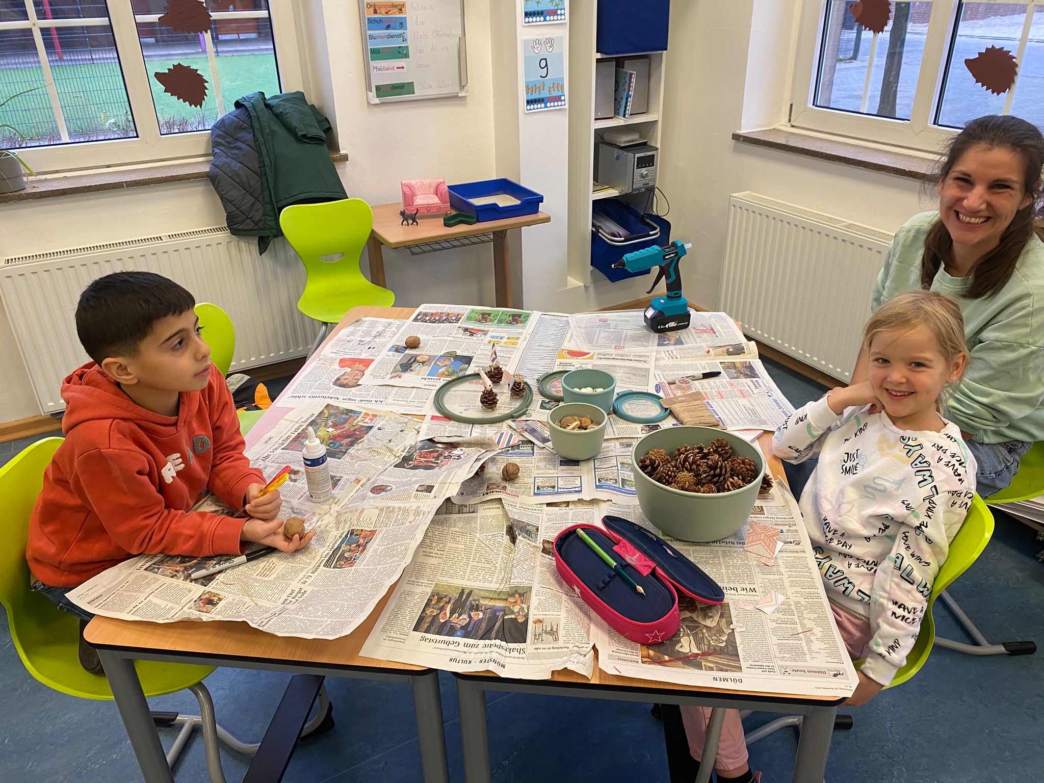 Am Freitag, den 29. November kamen die Schulkinder und viele Eltern wieder zum traditionellen Weihnachtsbasteln in unsere Schule. Die Eltern brachten viele tolle Ideen und jede Menge Bastelsachen mit: Scheren, Papier, Kleber, Feilen, Dekomaterialien und vieles mehr. Zusammen mit den Kindern wurden die Ideen für die Bastelarbeiten umgesetzt und jeder konnte mit viel Fantasie und Kreativität eigene Vorstellungen einbringen und ausprobieren. Alle hatten vielen Spaß!!! Die Schule ist nun wieder richtig schön weihnachtlich dekoriert. Wir sagen Danke für die viele Elternhilfe und träumen jetzt schon von Weihnachten bei der schönen Atmosphäre.