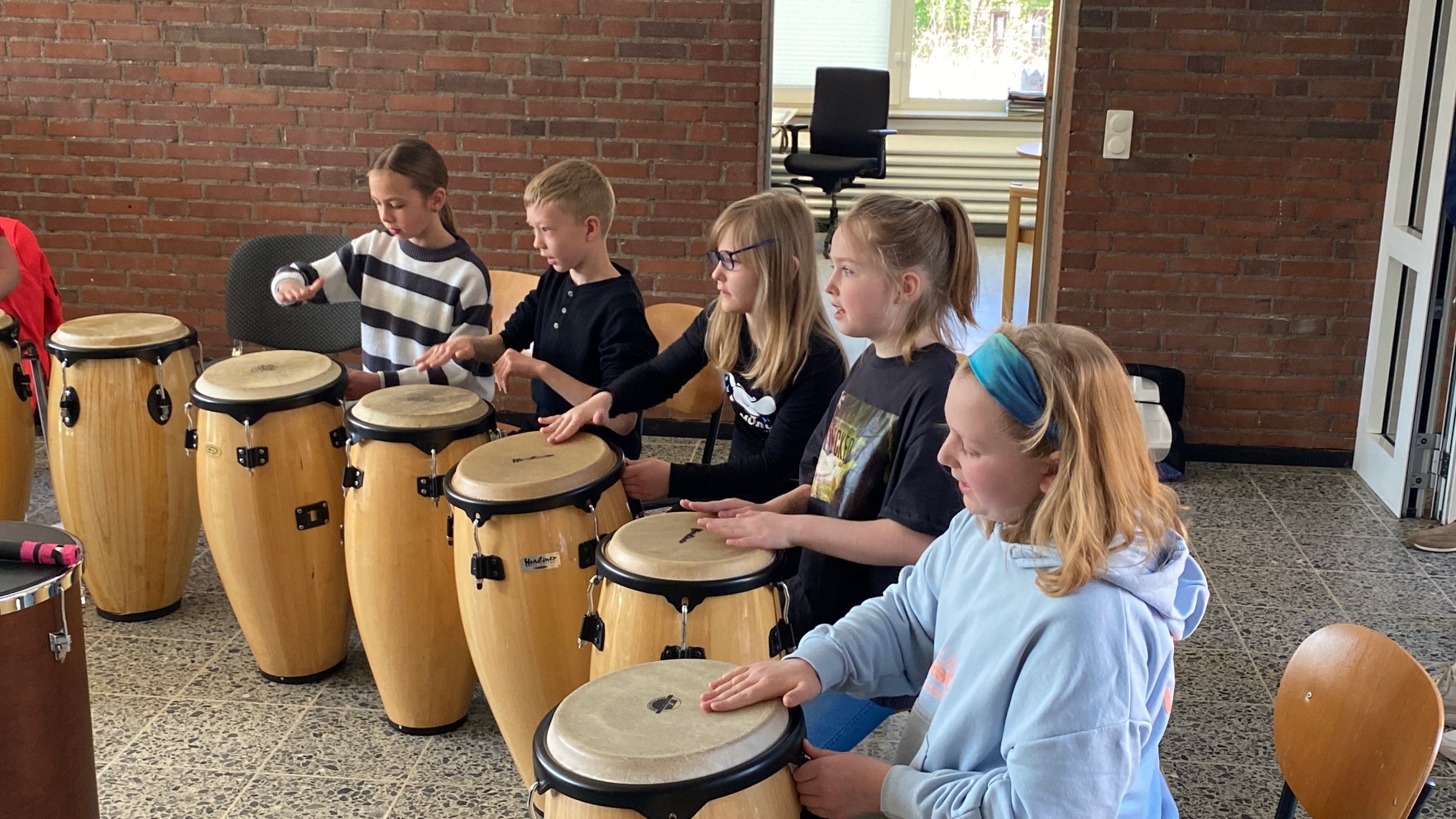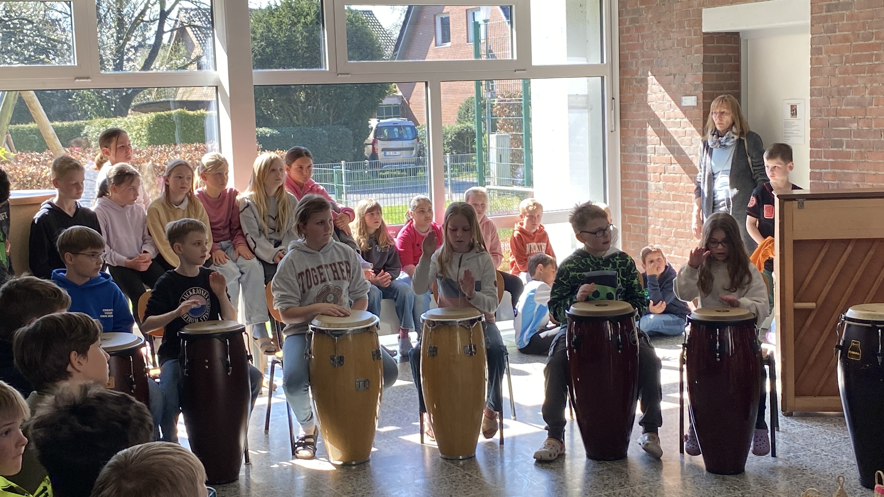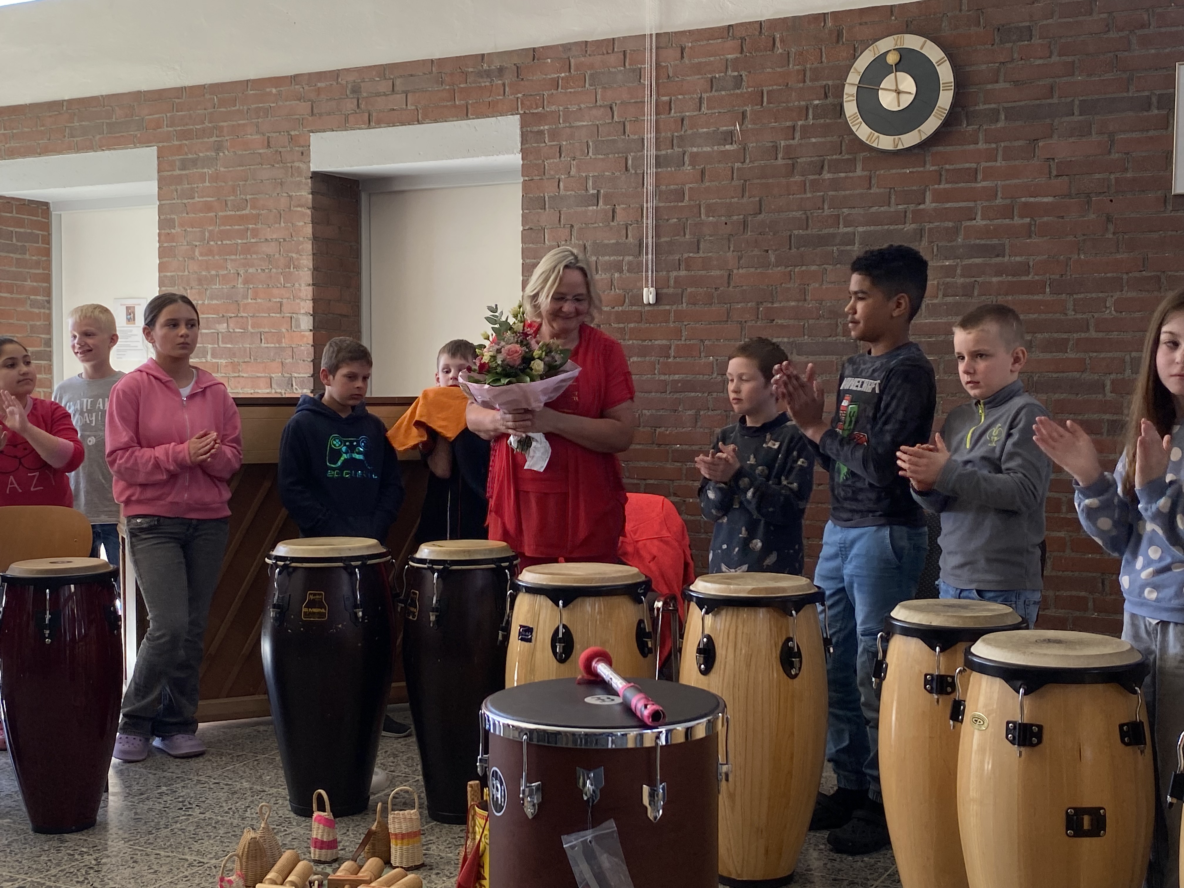 Seit einigen Jahren schon arbeitet die Musikerin und Trommel-Lehrerin aus Münster-Wolbeck regelmäßig mit unseren SchülerInnen und bereichert damit das musikalische Angebot unserer Schule. Finanziert wird das Projekt mit Mitteln aus dem NRW Landesprogramm Kultur und Schule.