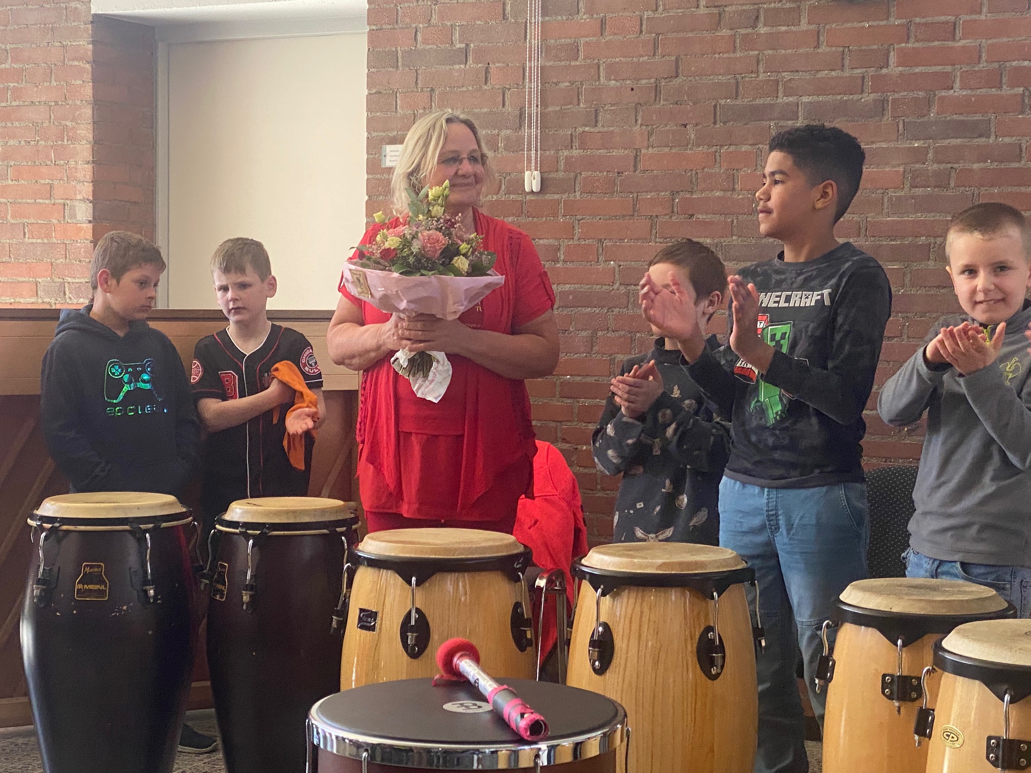 „Adios Mama, adios Papa, que yo me voy con la Conga!“ Den Kindern sprudeln die Worte in den fremden Sprache fließend im südamerikanischen Trommelrhythmus von den Lippen. Ein frecher Hüftschwung beschließt das Liedchen, das die Lebensfreude kubanischen Karnevals in die Aula der KVG spült. „Tschüss Mama, tschüss Papa, ich gehe schon mal und folge den Congas“, heißt es in etwa übersetzt, erläutert Dorothee Marx, Musikerin den anwesenden Eltern und Großeltern. Die haben vorher erlebt, was ihre Kinder in der AG alles gelernt haben und wie viel Spaß sie dabei hatten. Das ist Dorothee Marxx auch das Wichtigste: Die Kinder sollen Freude beim Musizieren in der Gemeinschaft haben.