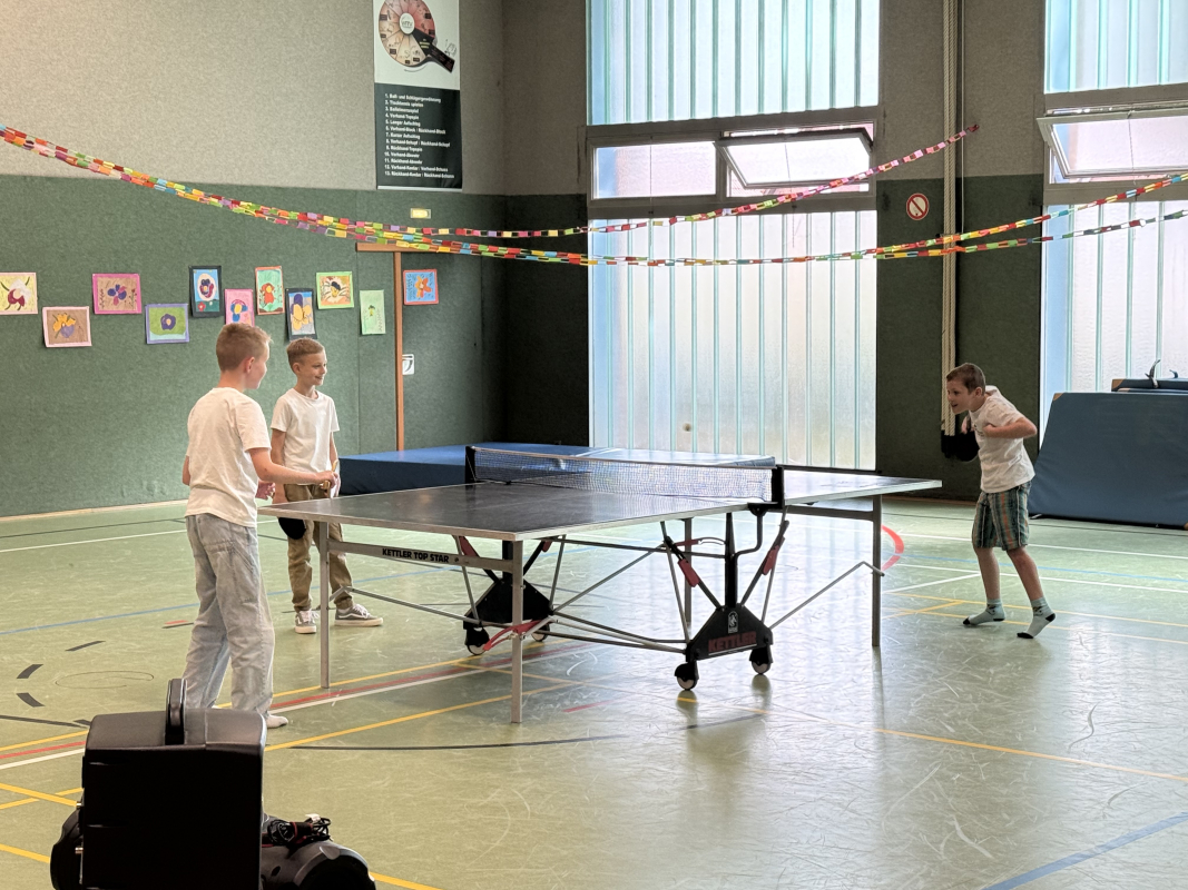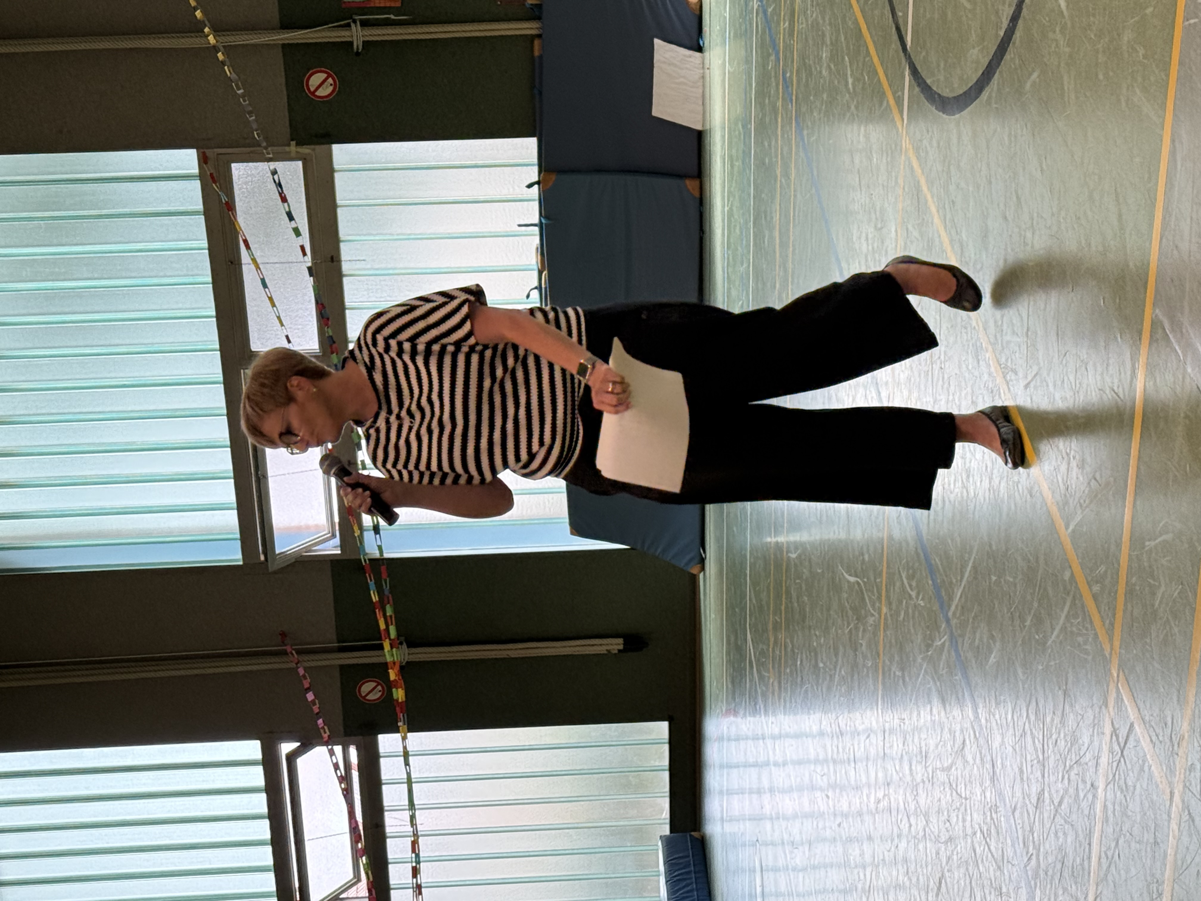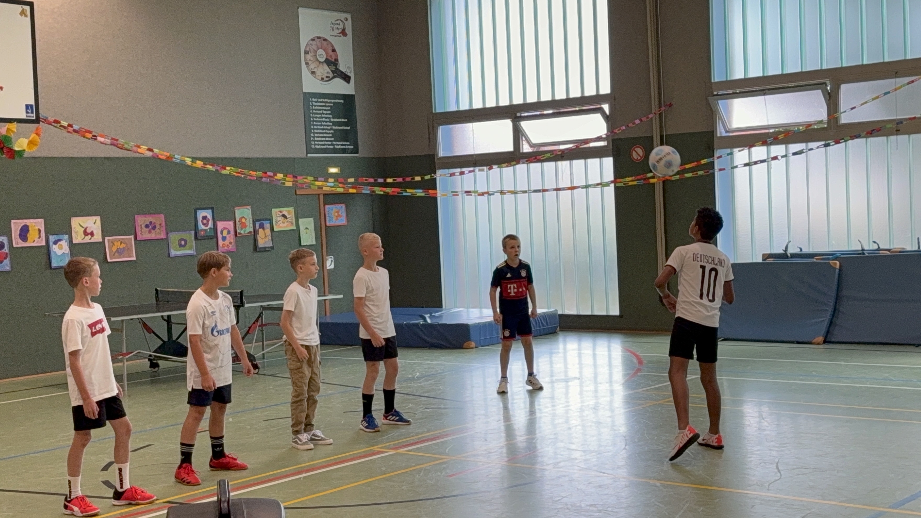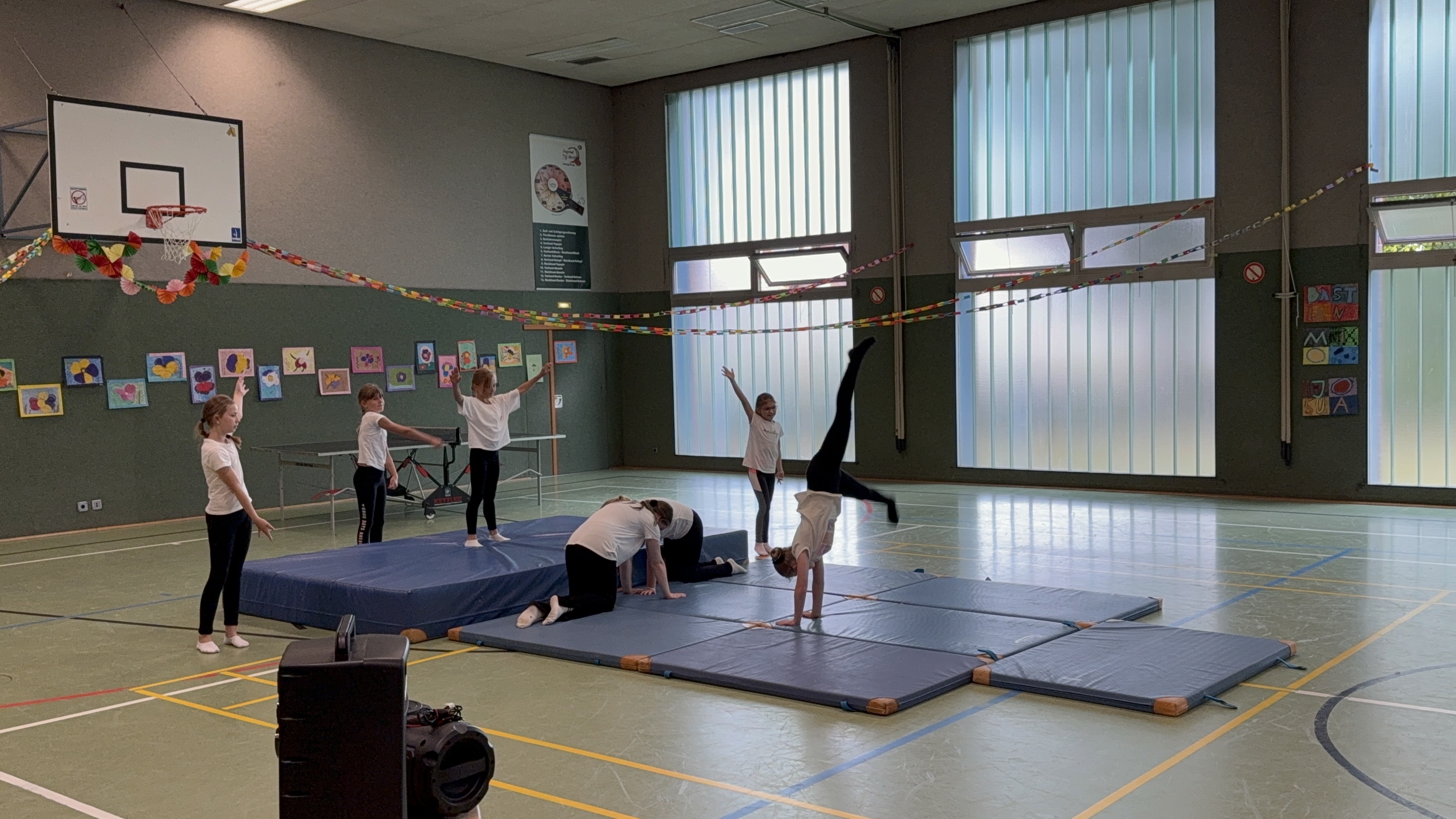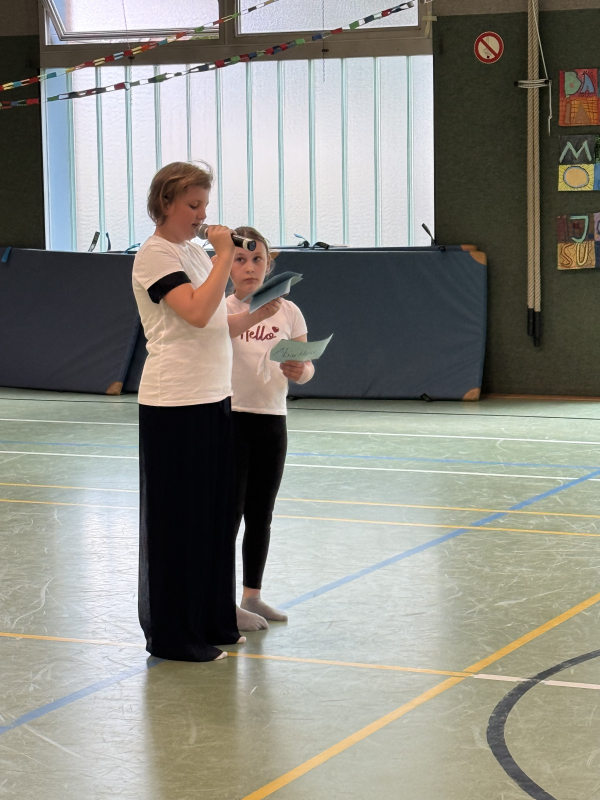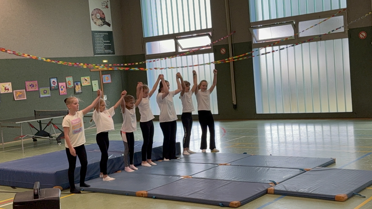 Mit einem bunten und fröhlichen Programm verabschiedete sich die Klasse 4m in der vergangenen Woche von ihrer Grundschulzeit. Gemeinsam mit ihrer Klassenlehrerin Frau Leuchten hatten die Kinder ein vielseitiges Programm auf die Beine gestellt. Mit Musik, Tanz, sportlichen Einlagen und humorvollen Beiträgen sorgten die Kinder für beste Unterhaltung und bewegten so manches Herz im Publikum.