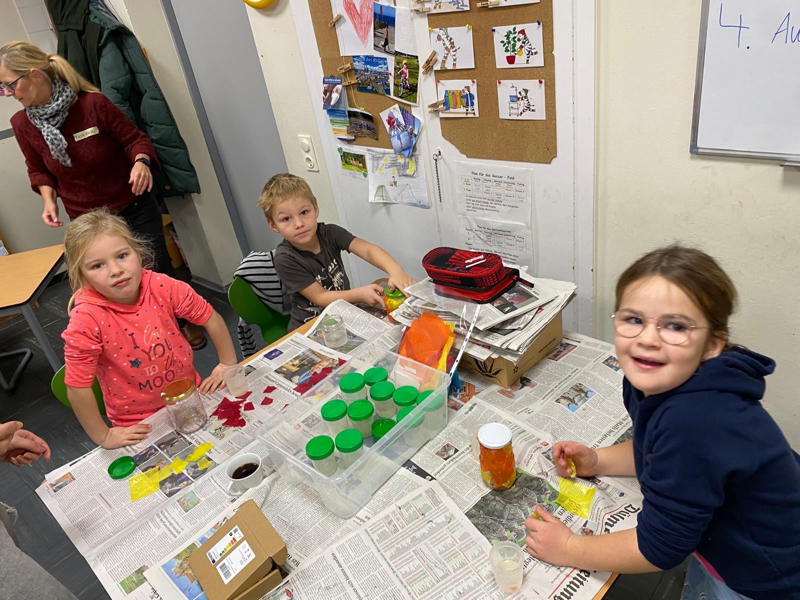 Besonders schön: Viele Eltern waren mit dabei, saßen am Basteltisch und hatten mindestens genauso viel Spaß wie die Kinder. Sie halfen beim Vorbereiten der Materialien, beim Basteln und hier und da auch beim Knoten oder Schneiden.