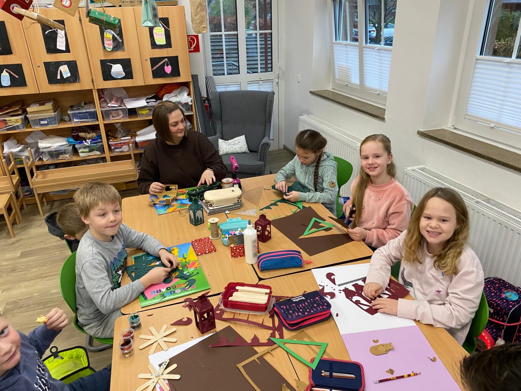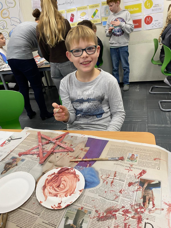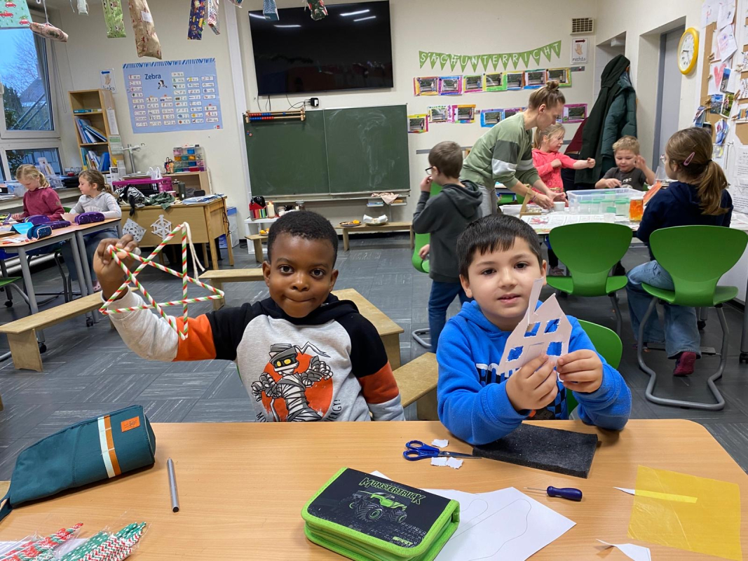 Am Ende des Vormittags waren die Flure voller kleiner Kunstwerke. Alle Kinder waren stolz, ihre Bastelstücke zu zeigen – und man merkte, wie viel Mühe in jedem einzelnen steckt. Nun hängt schon ein bisschen Advent in unserer Schule, und alle freuen sich auf die kommenden Wochen.