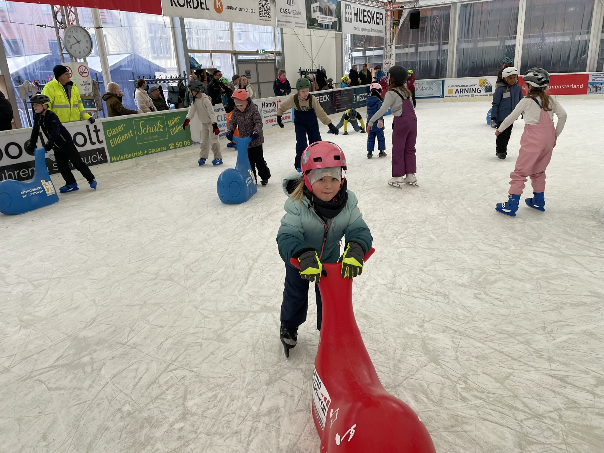 Jedes Jahr im Dezember gehört das Schlittschuhlaufen für viele Schulklassen aus Dülmen zum festen Bestandteil des Schuljahres – so auch für die Kinder aus Merfeld. Im Rahmen des Dülmener Winters nutzten alle Klassen der KVG die Gelegenheit, sich auf der überdachten Eisarena auf dem Marktplatz auszuprobieren und gemeinsam winterlichen Spaß zu erleben.