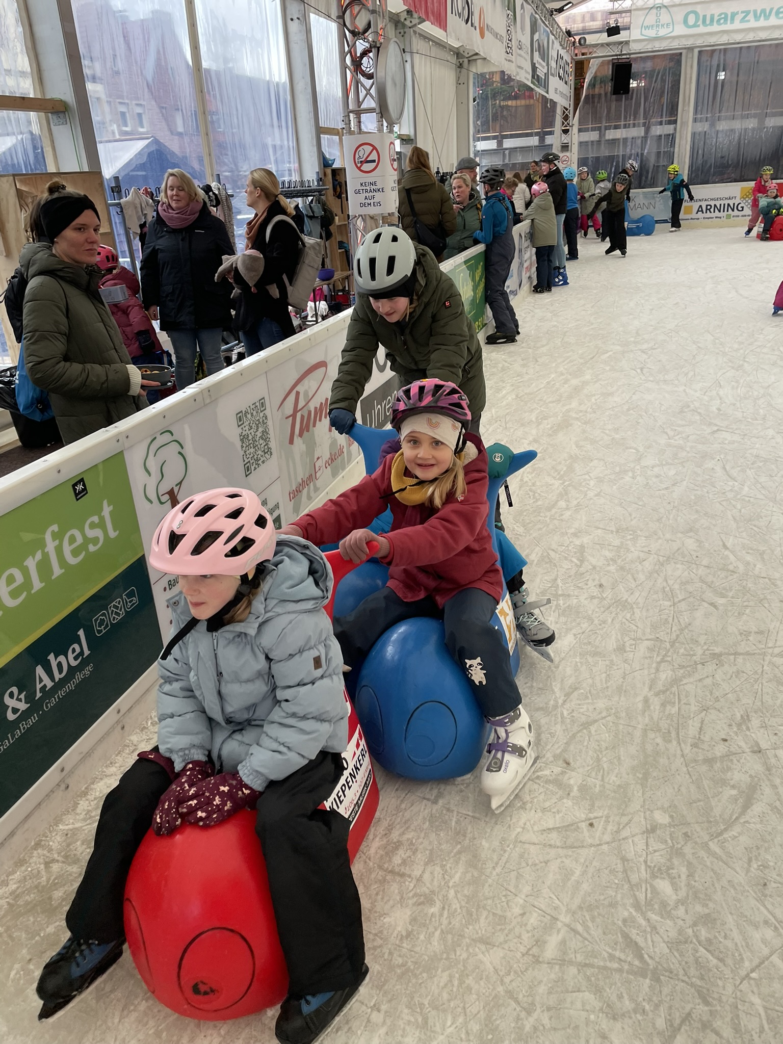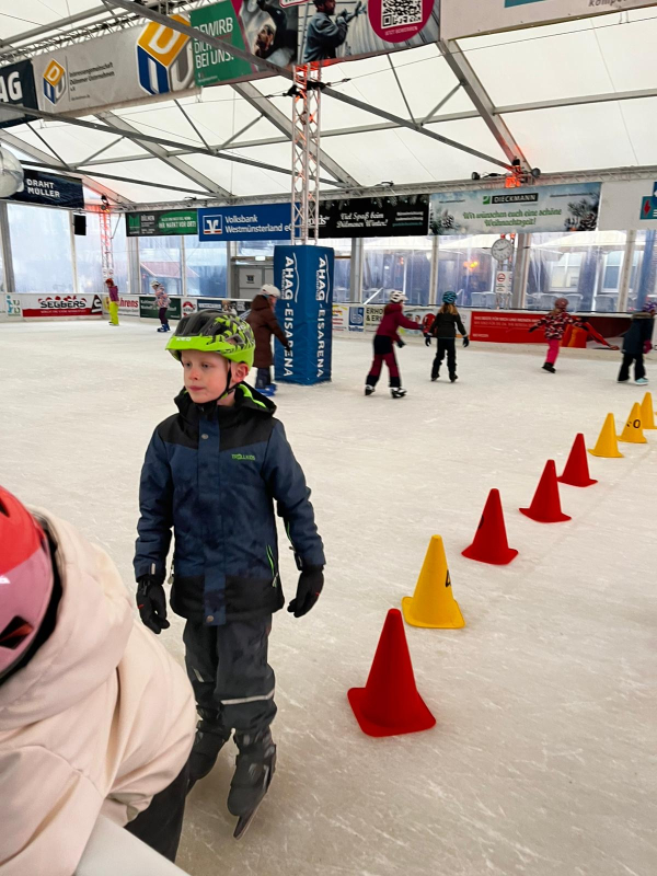 Nach der Ankunft schnürten die Kinder unterstützt von vielen Eltern ihre Schlittschuhe und wagten sich – je nach Können – vorsichtig oder schon sehr sicher auf das Eis. Wie bei ähnlichen Veranstaltungen zeigte sich schnell, dass das gemeinsame Erlebnis wichtiger war als sportliche Höchstleistungen. Während einige ihre ersten Schritte auf dem Eis machten, drehten andere bereits routiniert ihre Runden. Gegenseitige Hilfe und aufmunternde Worte gehörten dabei ganz selbstverständlich dazu.