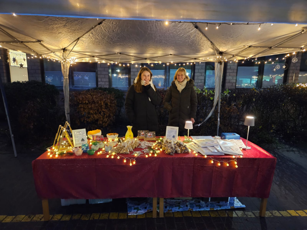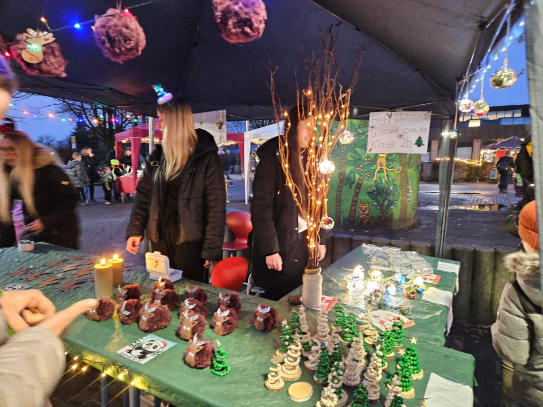 Wieder einmal weihnachtete es sehr auf dem Schulhof der Paul-Gerhardt-Schule. Die OGSen des Grundschulverbunds hatten wieder mit viel Liebe zum Detail zum Weihnachtsmarkt eingeladen. Viele fleißige Kinder und Mitarbeitenden der OGSen de Paul-Gerhardt-Schule und Kardinal-von-Galen-Schule hatten in den letzten Wochen gebastelt und für eine Aufführung geprobt. Die Ergebnisse waren wieder fantastisch. Unter hell beleuchteten Pavillions wurden die Arbeiten angeboten und waren schnell verkauft.