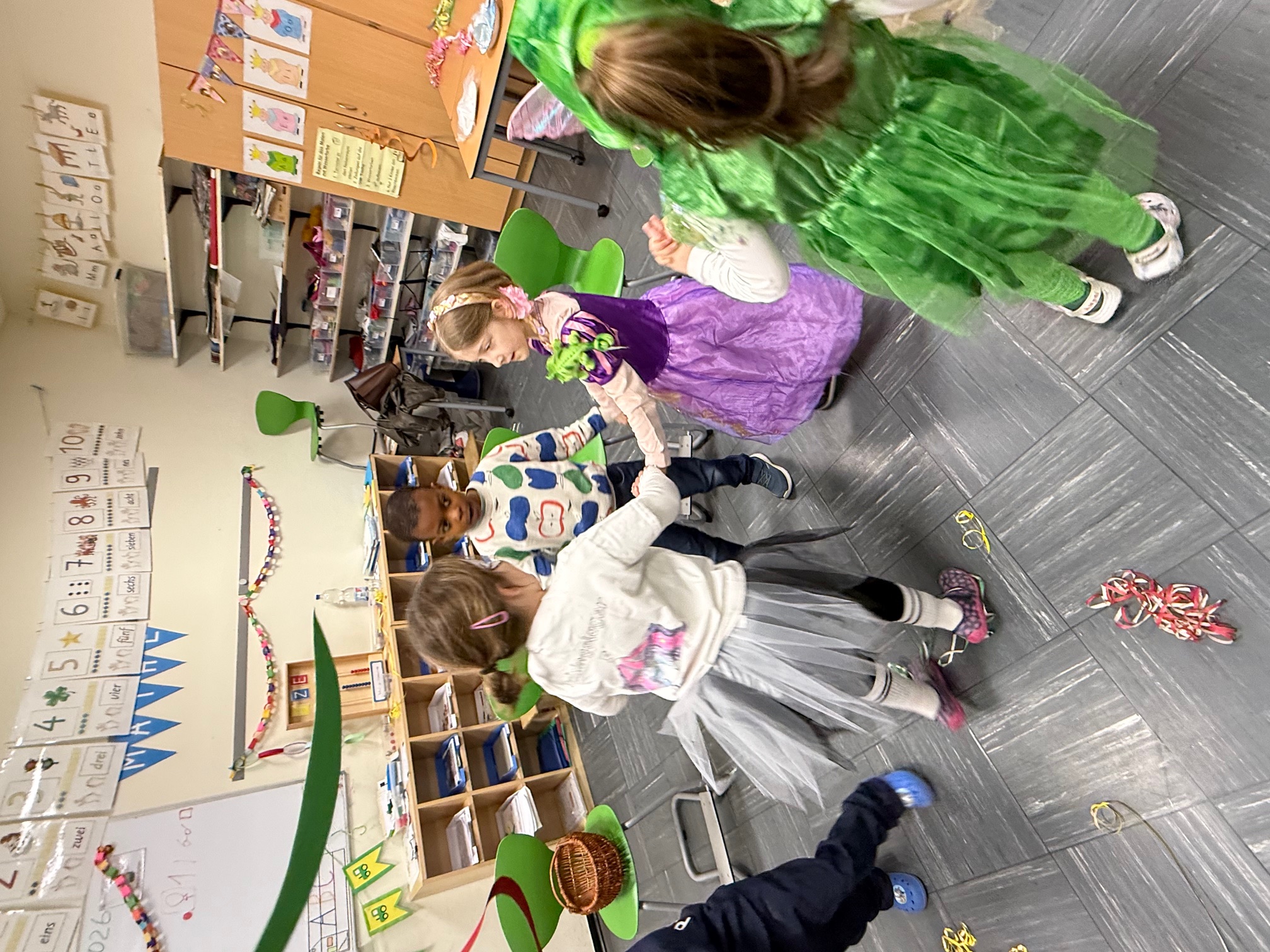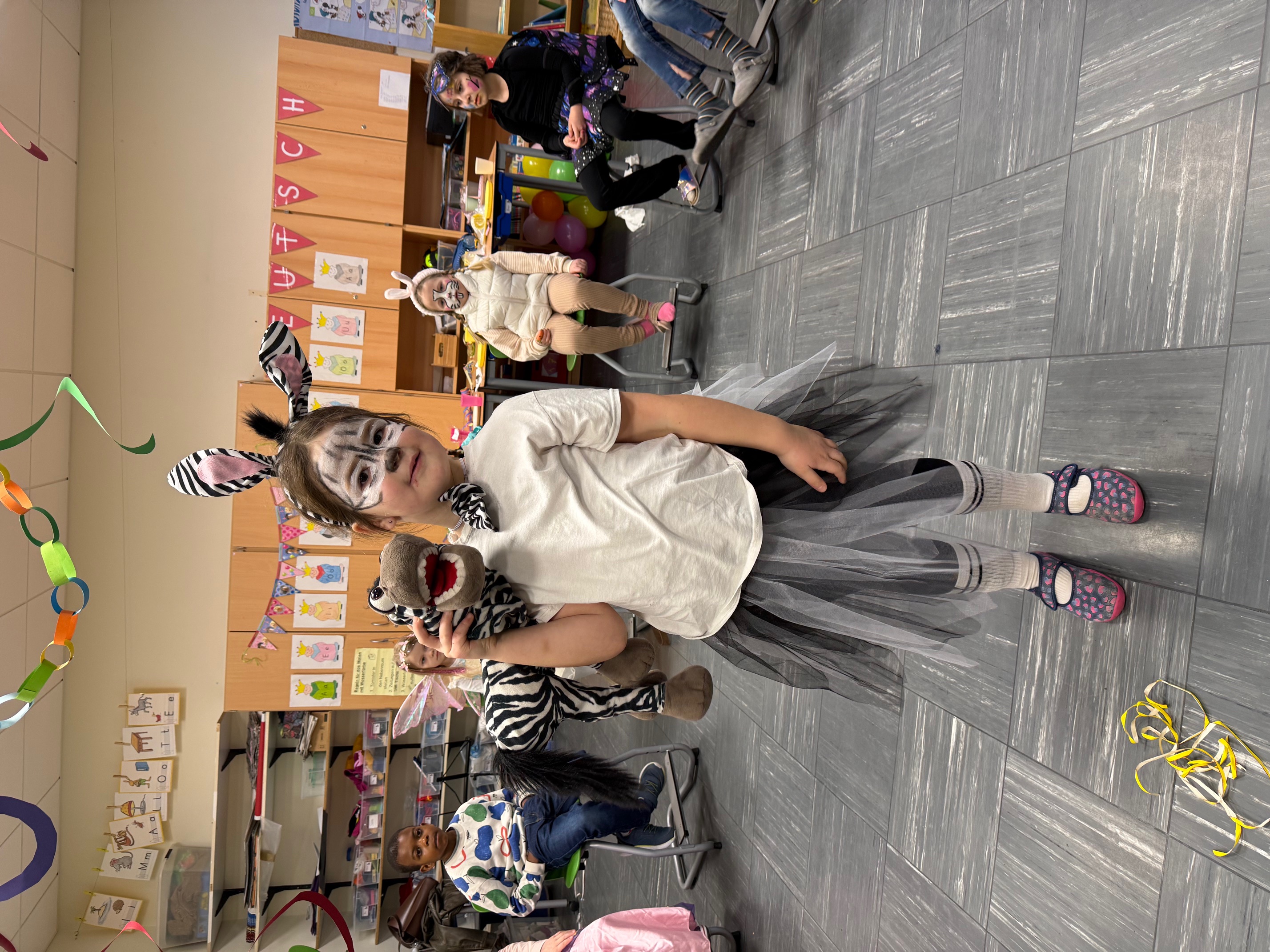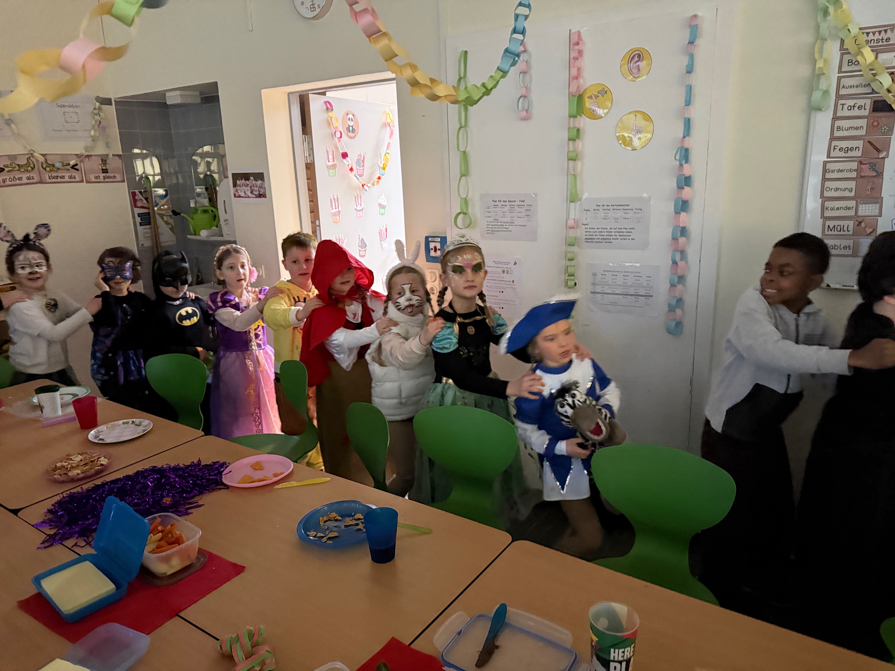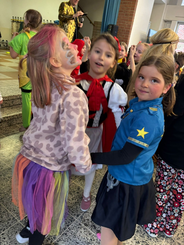 Zunächst wurde in den Klassen gefeiert. Dort wurde getanzt und es wurden die Spiele gespielt, die sich die Kinder gewünscht hatten – zum Beispiel „Mord in der Disco“, "Menschenmemory" oder die "Reise nach Jerusalem". Es wurde viel gelacht, angefeuert und natürlich durfte auch die passende Karnevalsmusik nicht fehlen.