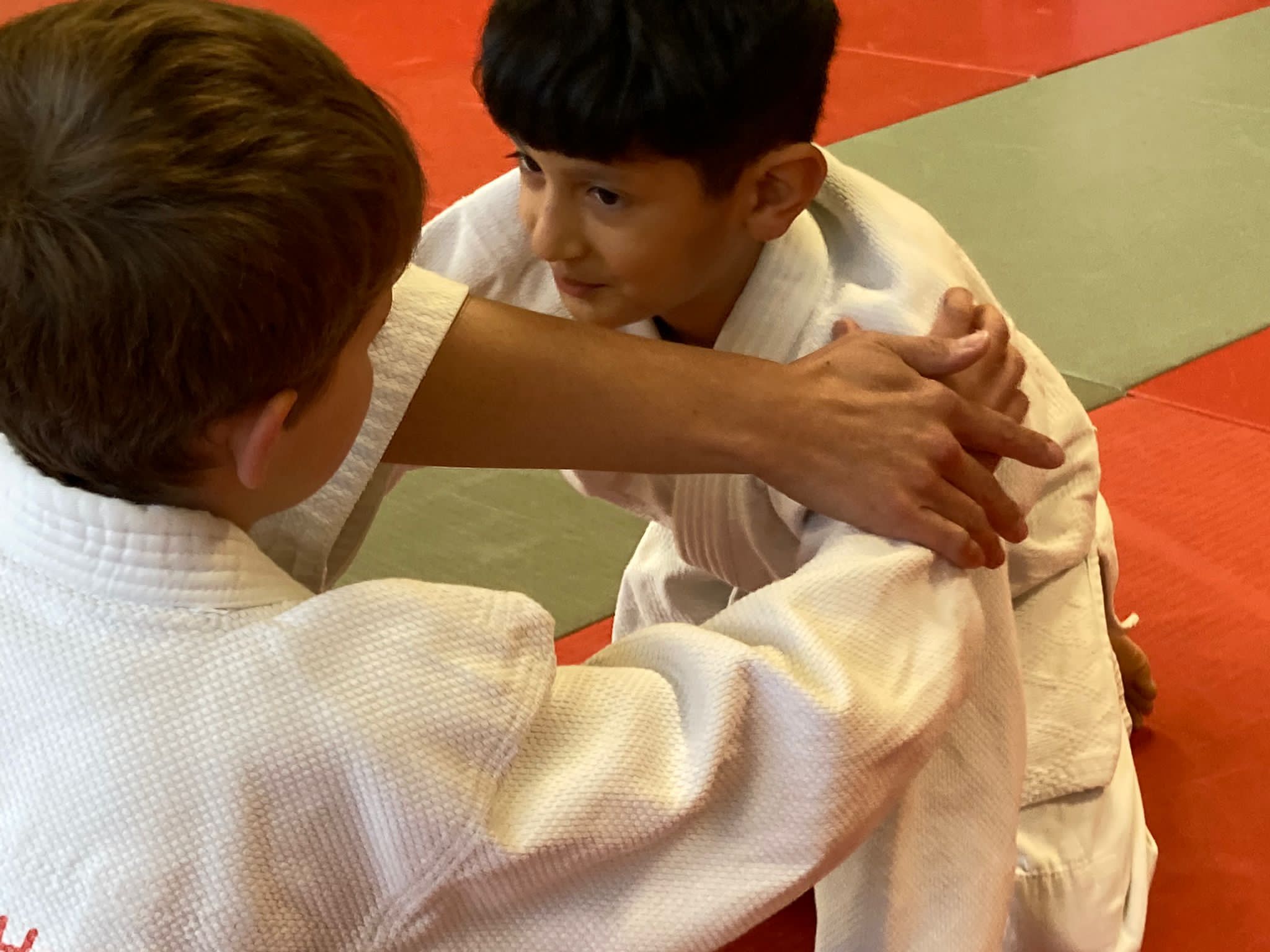 Spielerisch lernen die Schüler:innen die für viele noch unbekannte Sportart kennen. Schon nach nur einer Trainingseinheit gelingt vielen der erste Judowurf.