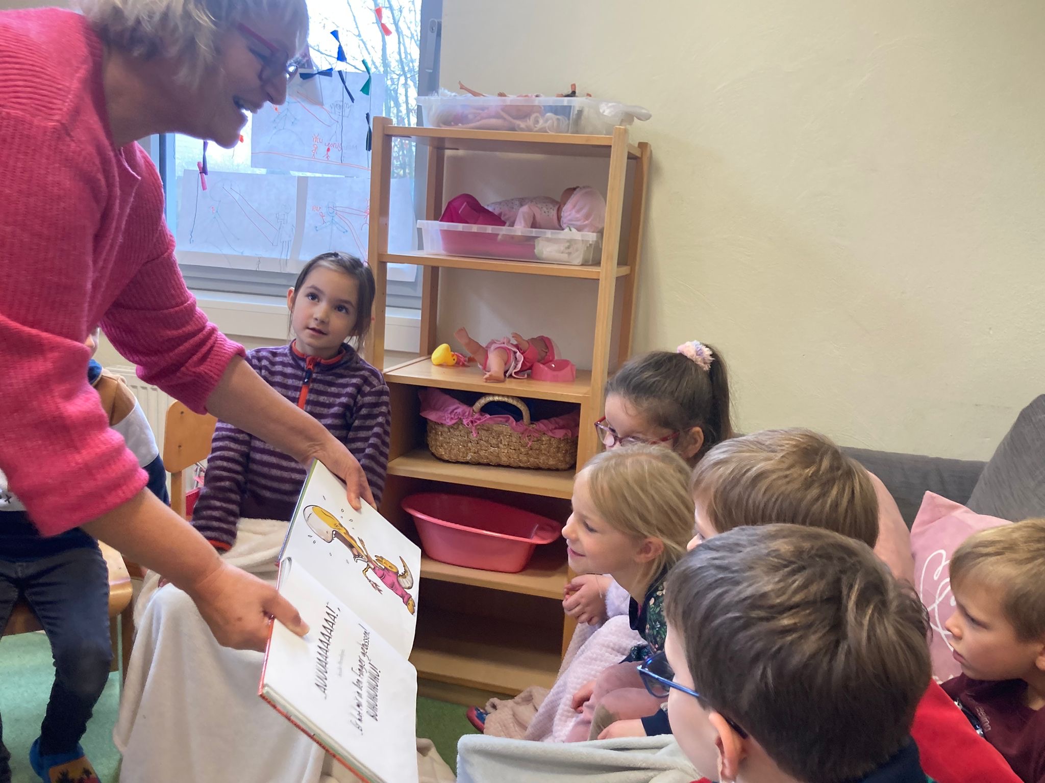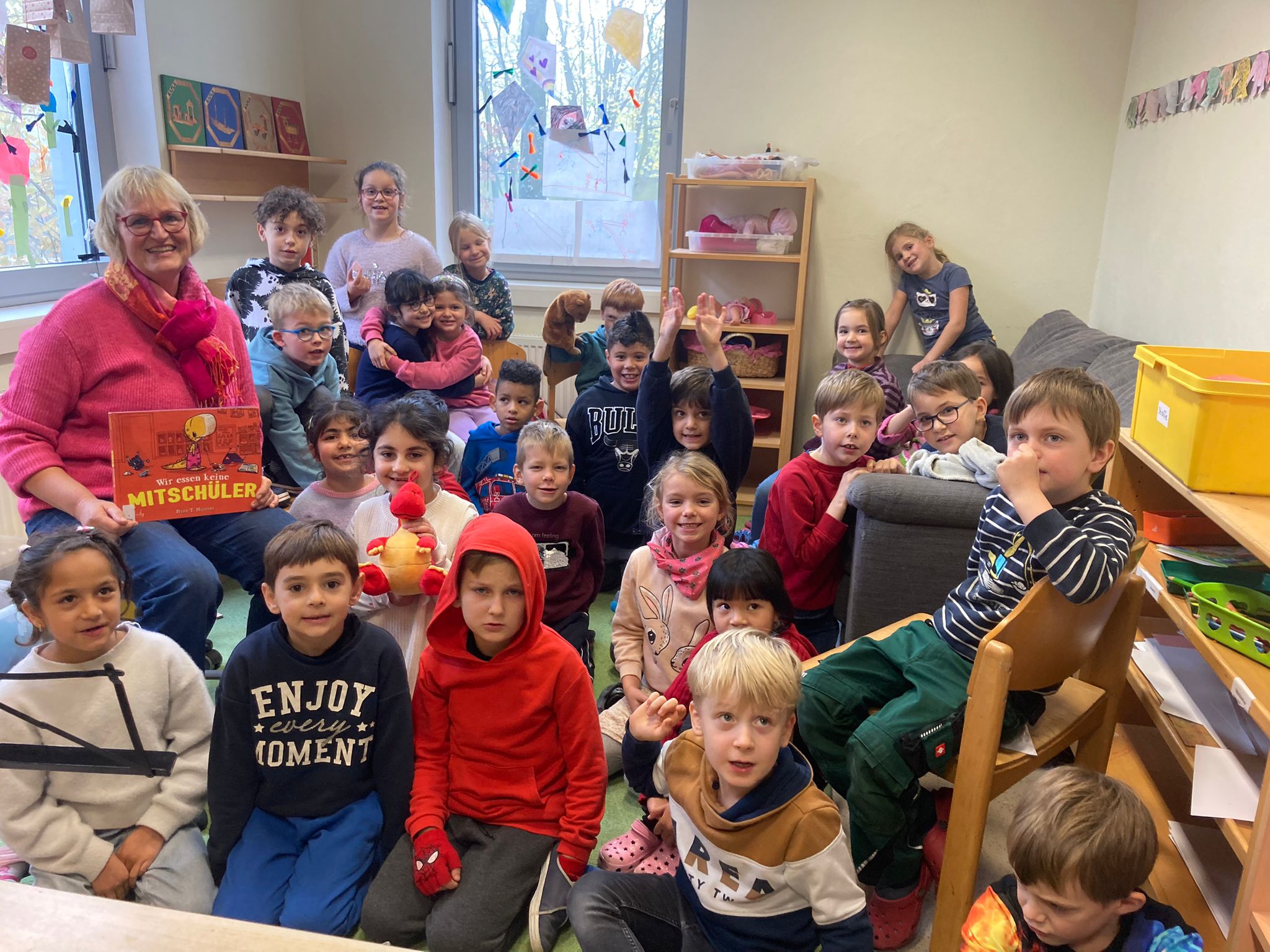 Vorlesetag an der PGS! In der 1a las Birgit Lorson „Wir essen keine Mitschüler“ - sehr zur Freude der 27 Erstklässler, die aufgeteilt in drei Gruppen, in schöner Atmosphäre mit Birgit Lorson über das kleine T-Rex-Mädchen Penelope Rex, das mit Eingewöhnungsschwierigkeiten in die Schule startet, ins Gespräch kamen. Zum Schluss gab es kleine Dinos zum Naschen…