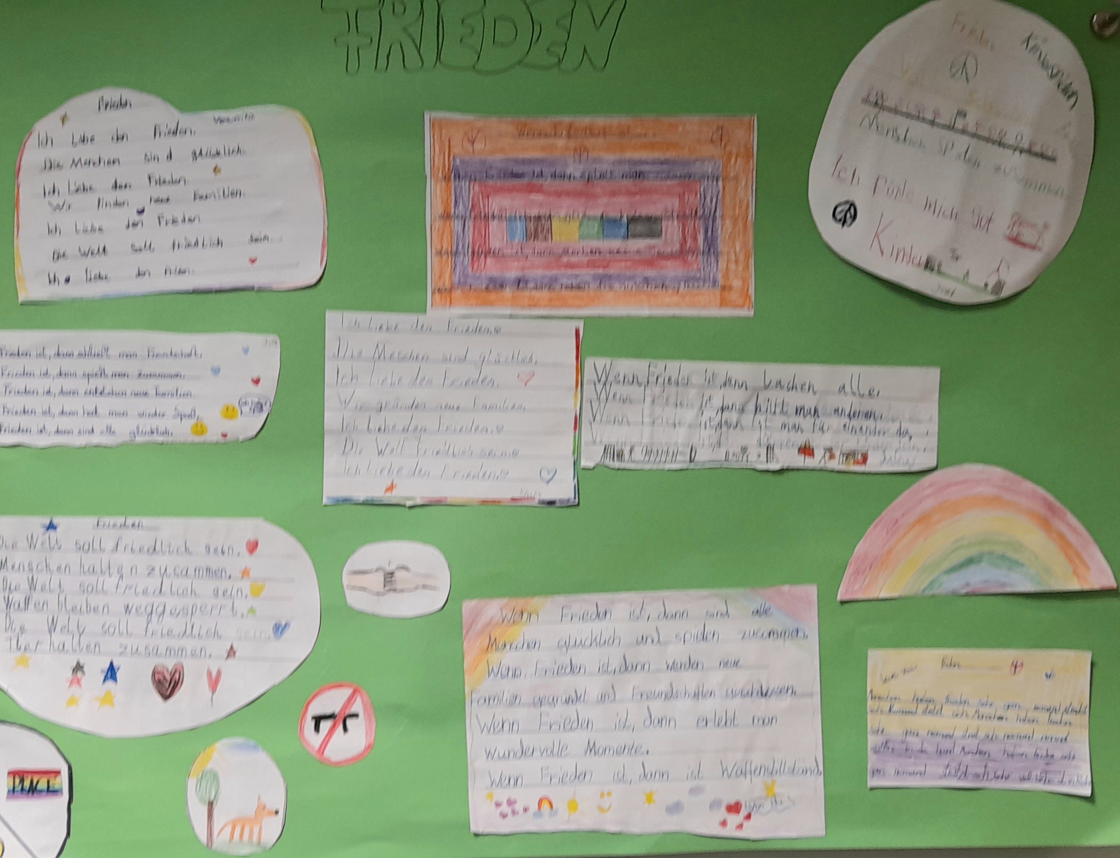 Im Religionsunterricht hat sich die Klasse 4a mit dem Thema „FRIEDEN“ auseinandergesetzt. Dabei sind eigene Friedensgedichte entstanden. Hier einige Beispiele: