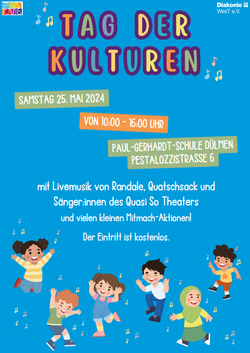 Am Samstag, den 25. Mai 2024, lädt die OGS des Grundschulverbundes PGS/ KVG herzlich zum Tag der Kulturen ein. Die Veranstaltung findet von 10:00 bis 16:00 Uhr auf dem Schulhof der PGS statt und verspricht ein abwechslungsreiches Programm für die ganze Familie.