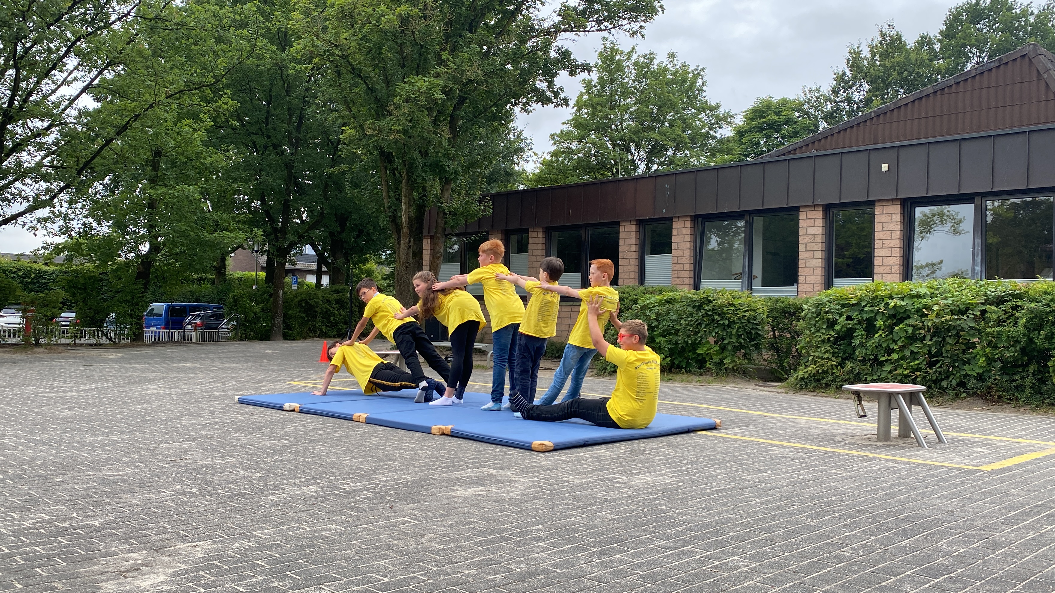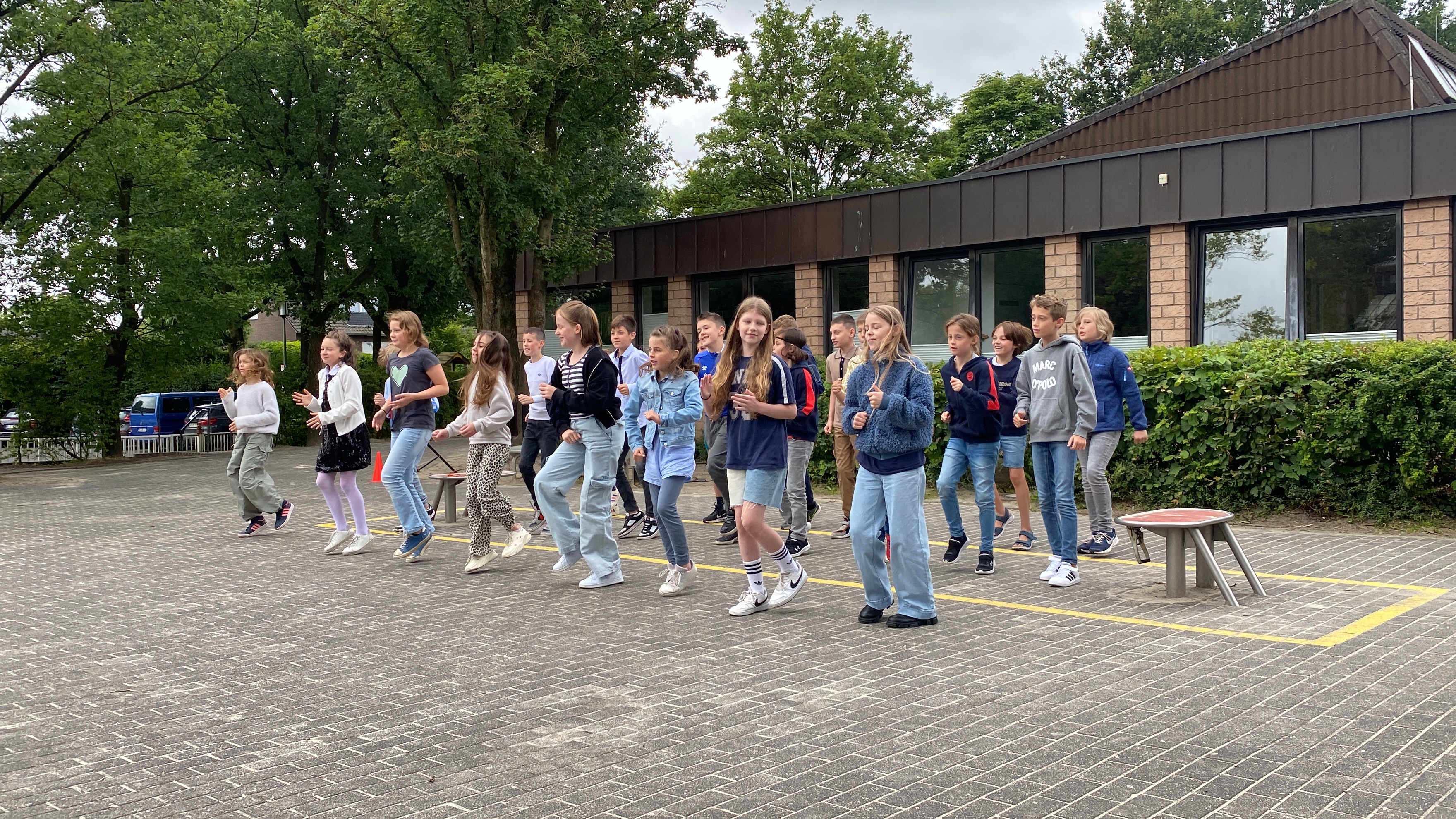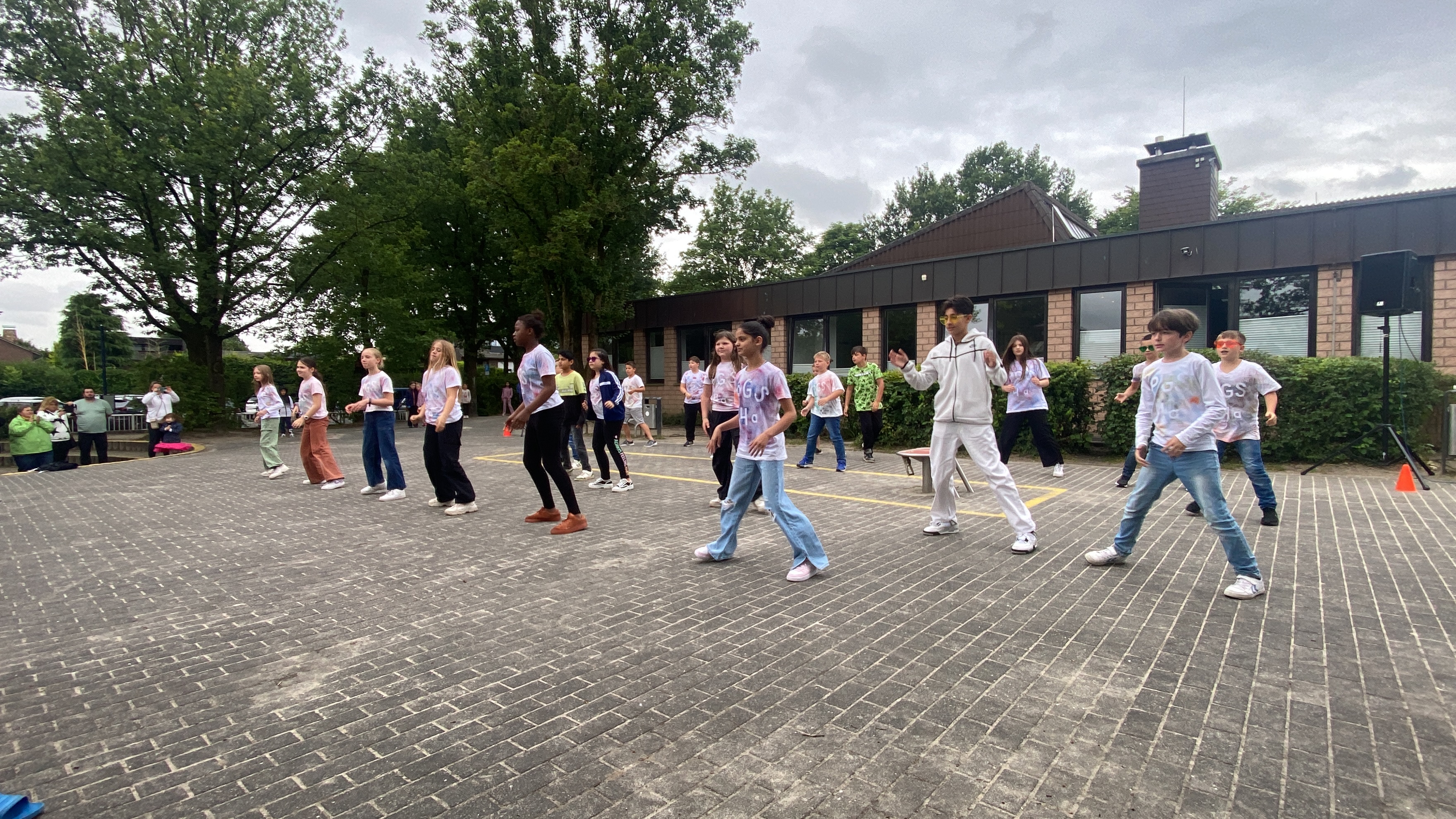 Am Freitag war es wieder einmal soweit: Wir mussten Abschied nehmen an der PGS. Unsere Viertklässler hatten ihren letzten Schultag an unserer Schule! Alle drei Klassen feierten zunächst gemeinsam mit ihren Lehrkräften, Eltern, Erziehern und Bufdis einen ökumenischen Gottesdienst auf dem Schulhof. Anschließend zeigten die Kinder noch einmal in Tanz- und Akrobatikdarbietungen ihre Talente. Frau Sawicki verabschiedete die Kinder in einer kleinen Ansprache und dankte noch einmal allen Beteiligten für die schöne gemeinsame Zeit. Auch das Team der OGS ließ es sich natürlich nicht nehmen, die Kinder mit einem Abschieds-Medley, Feuerwerk und Klatschstangen zu verabschieden.