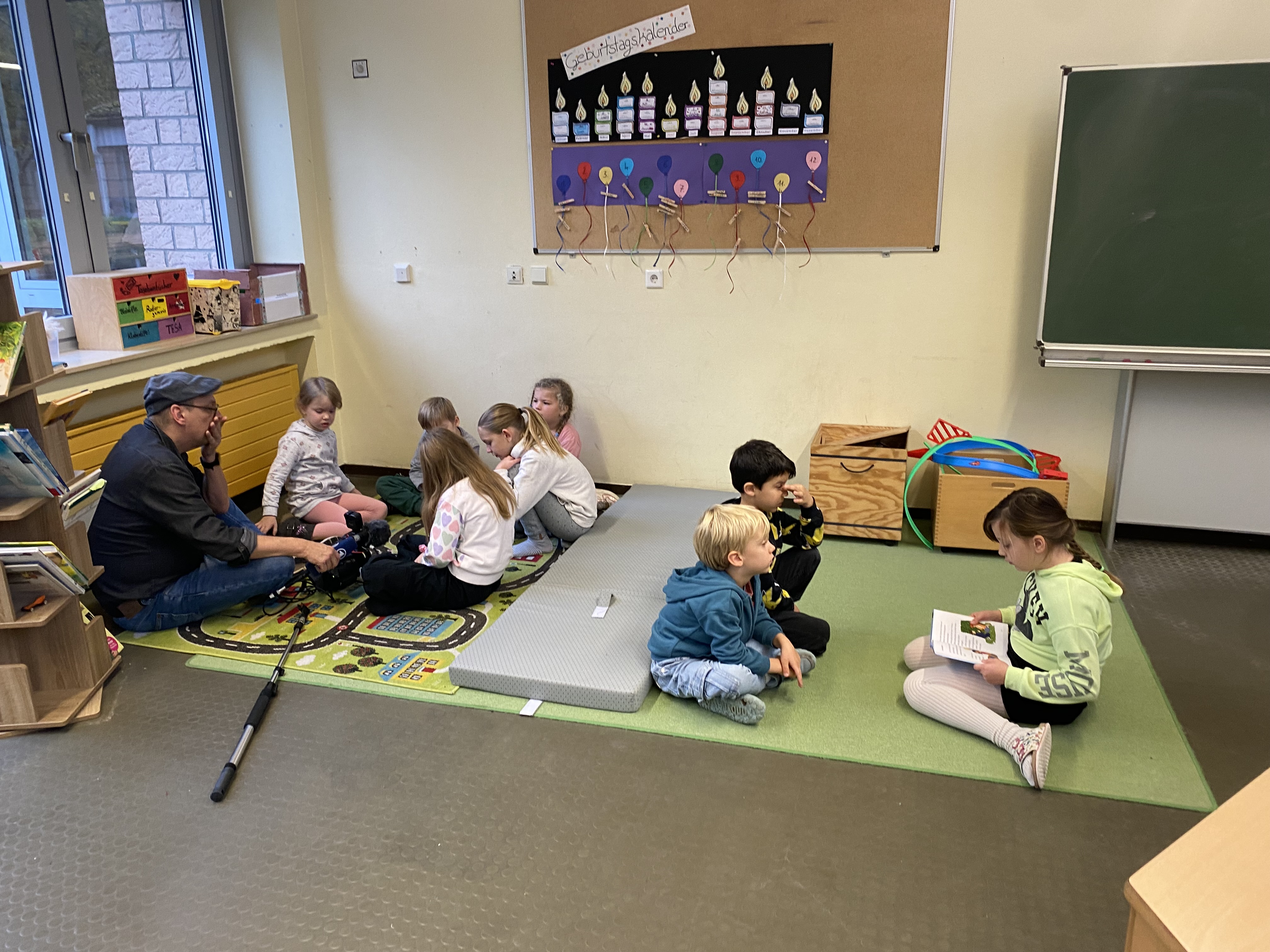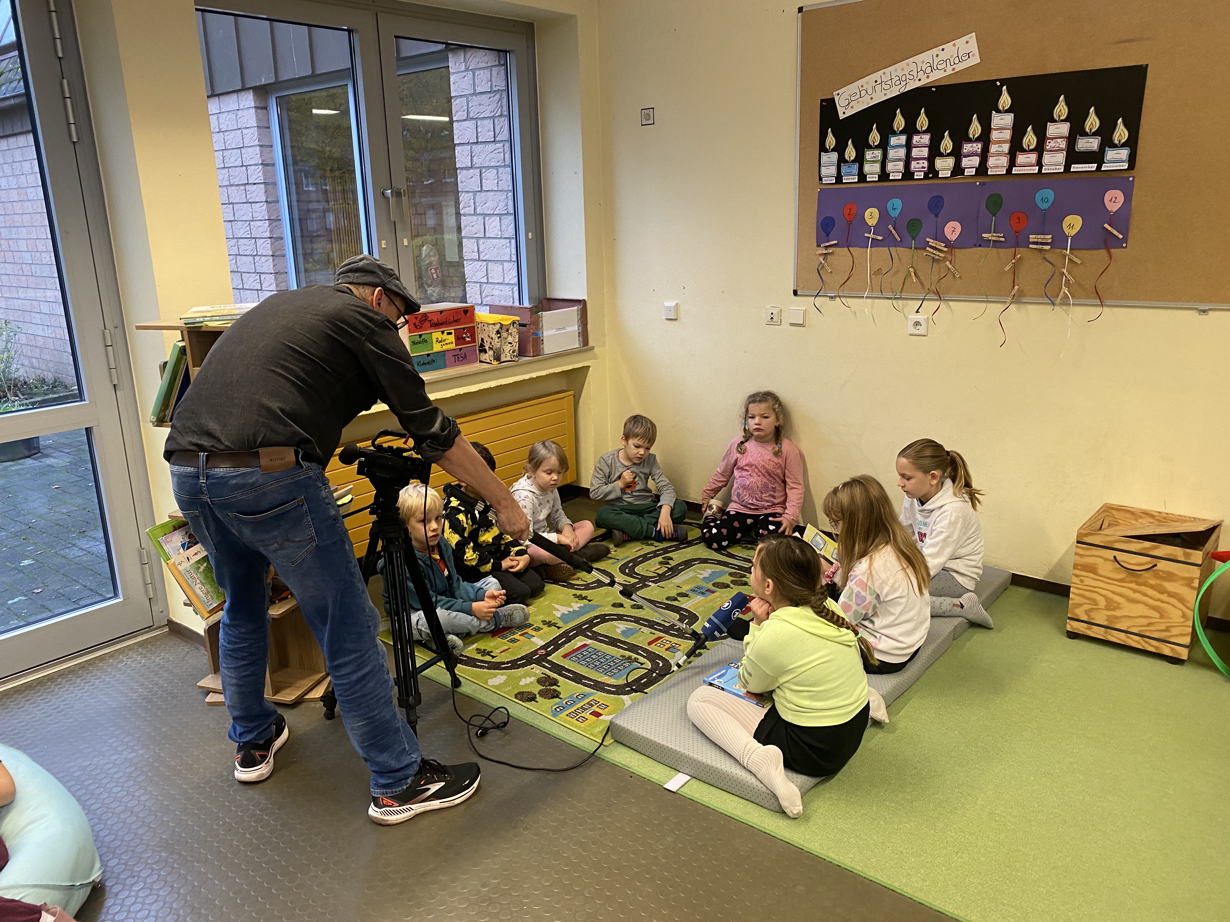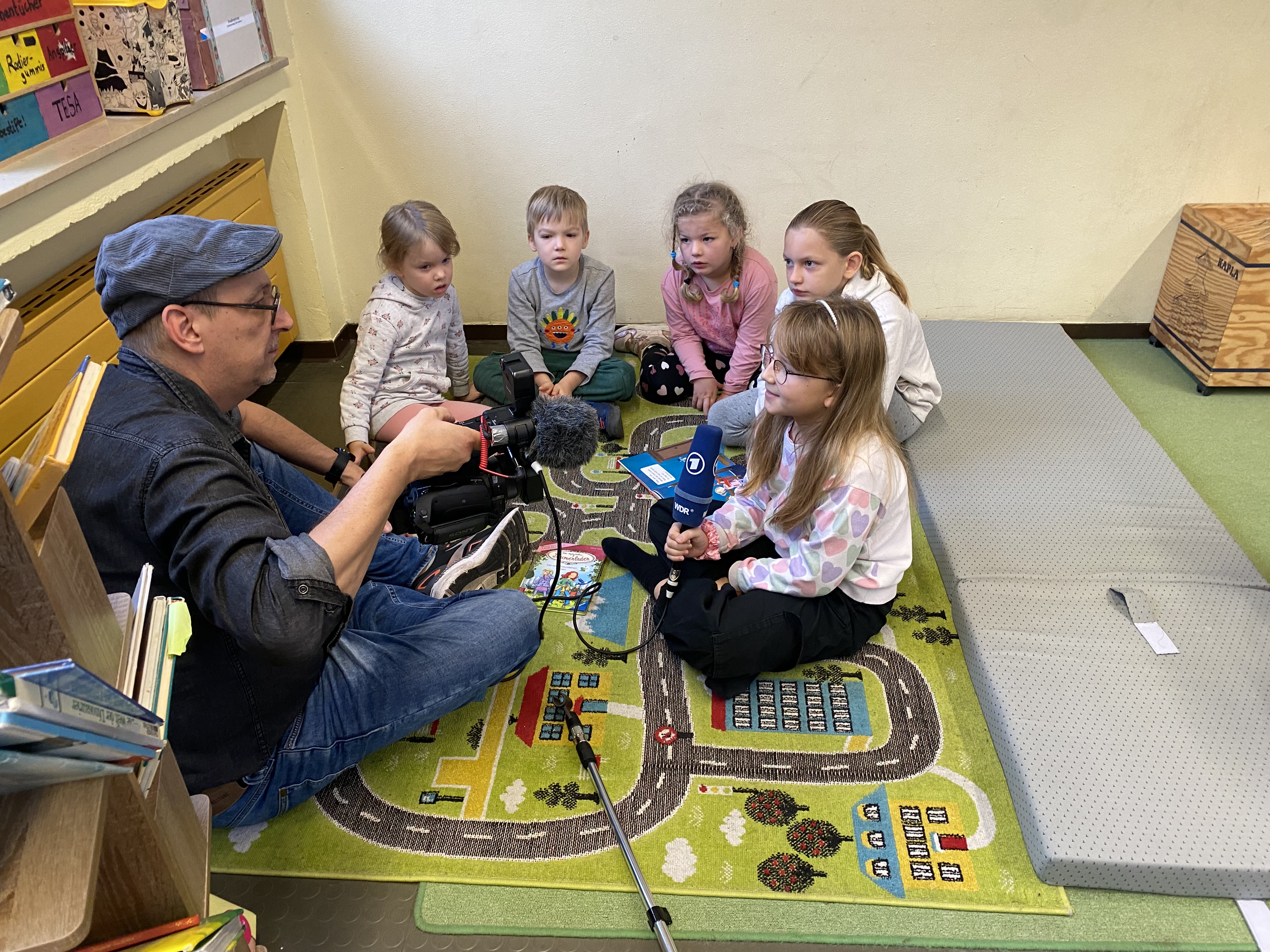 Neben den Vorleseaktionen der Erwachsenen, las die Klasse 4b auch Kindern aus dem Kindergarten vor. Dafür war sogar extra der WDR mit einem Filmteam vorbeigekommen und berichtete in der Lokalzeit Münsterland darüber.