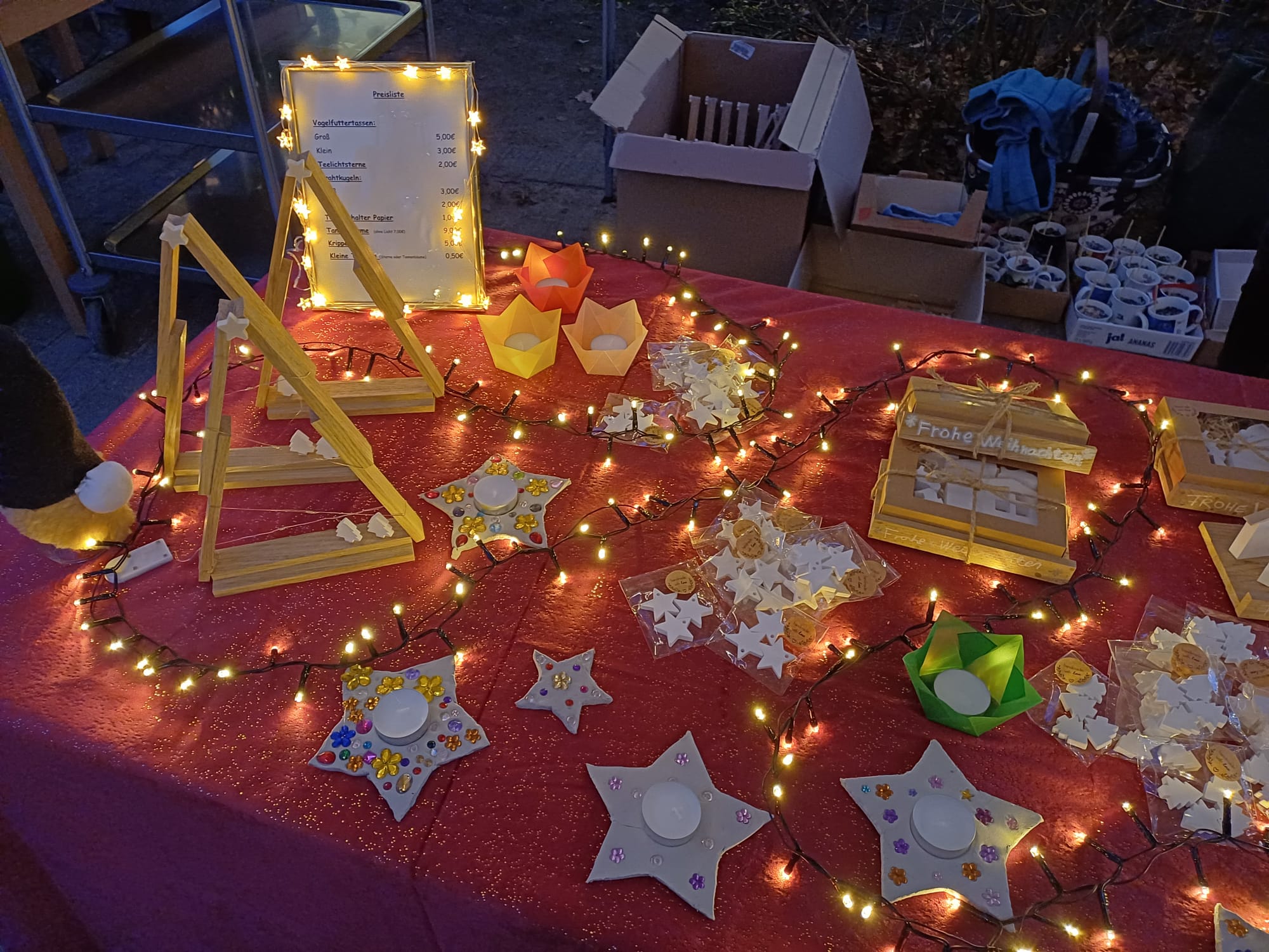 In den Wochen zuvor haben die Schülerinnen und Schüler viele weihnachtliche Bastelarbeiten angefertigt, die auf dem Markt zum Verkauf angeboten wurden.