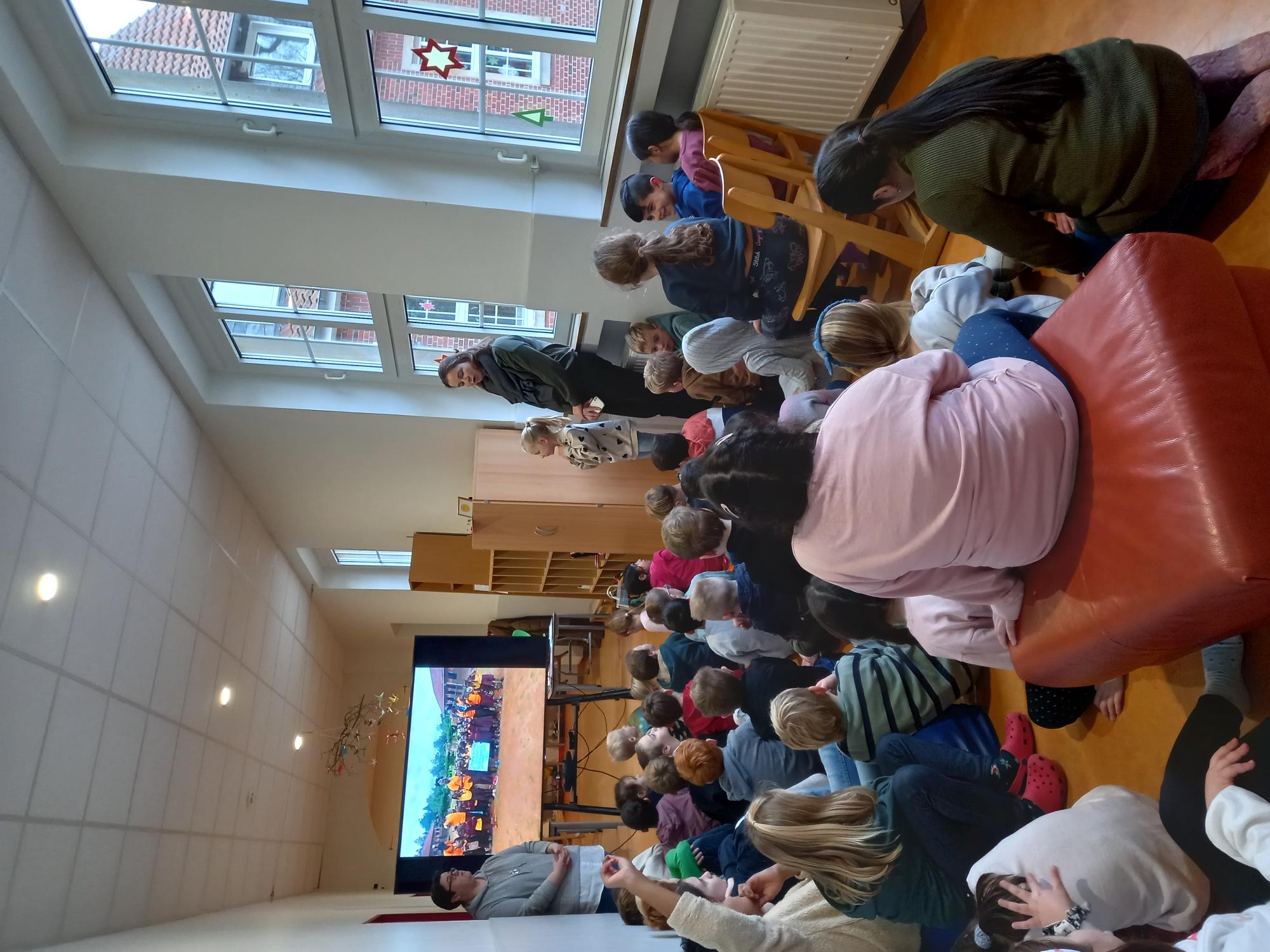 Frau Springeneer erklärte den OGS Kinder sehr anschaulich mit Fotos und Videos, wie die Kinder in Uganda leben, wie sie zur Schule gehen und was sie in ihrer Freizeit machen. Die Kinder hatten noch viele weitere Fragen zum Leben in Uganda.