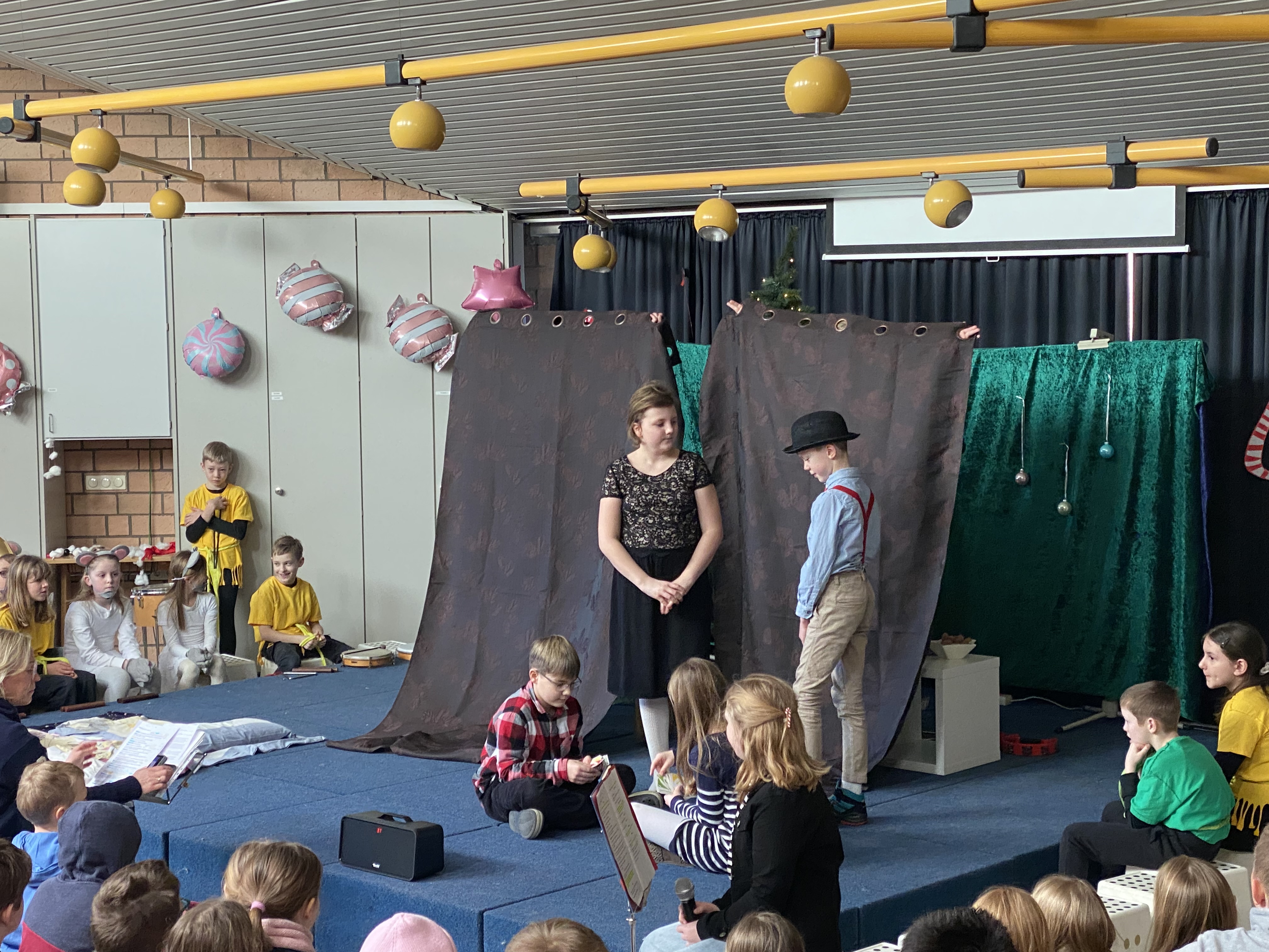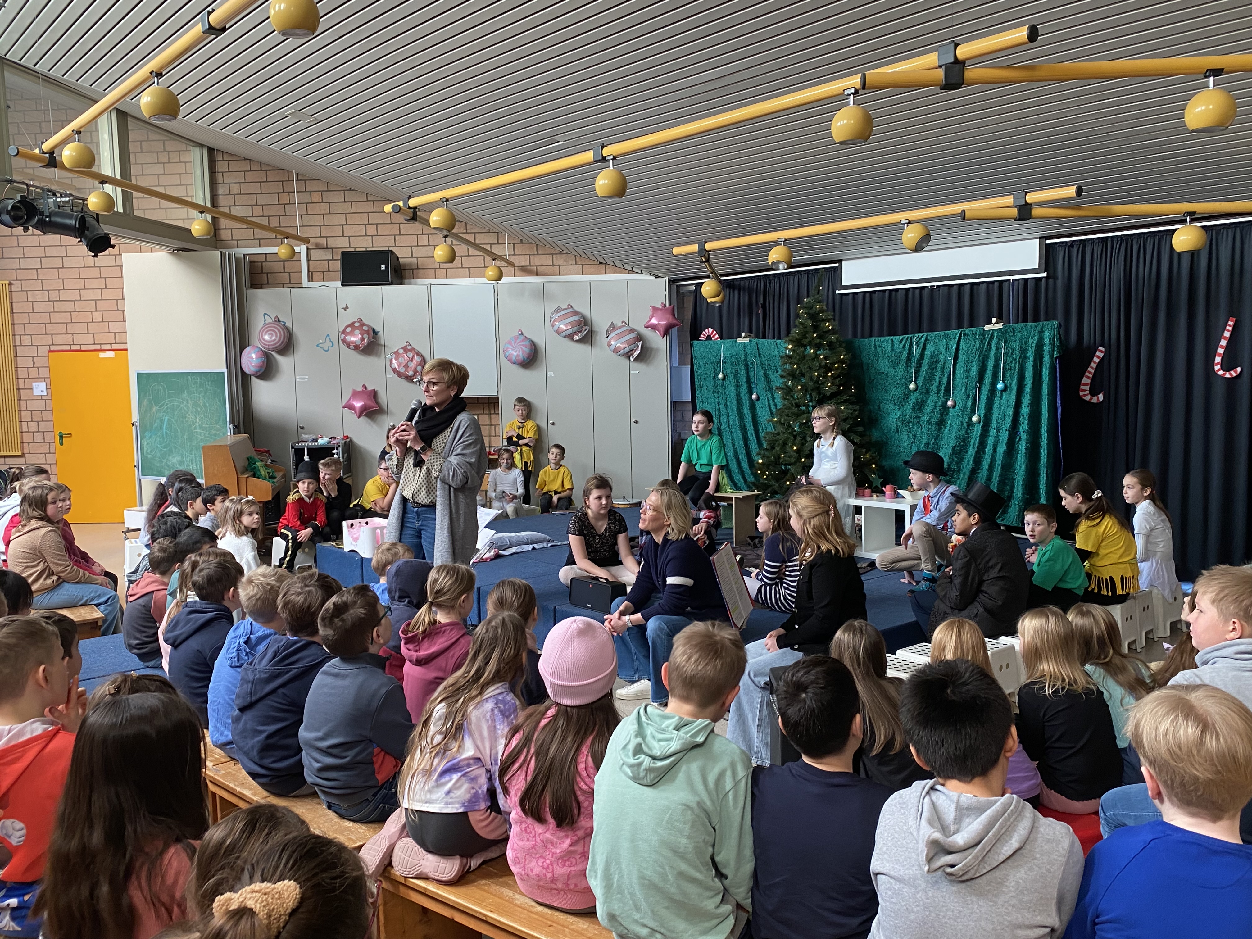 Anfang Februar fand im Musikraum eine beeindruckende Theateraufführung des Stücks „Der Nussknacker“ für die Klassen 2 und 3 statt. Die SchülerInnen der Klasse 4m von unserem Nebenstandort aus Merfeld hatten monatelang geprobt, um ihren Mitschülern, Lehrern, Eltern und Verwandten dieses klassische Märchen von E.T.A. Hoffmann näherzubringen. Bei den den Aufführungen in Merfeld waren ihre Leistungen so großartig, dass Frau Sawicki sich die Vorstellung auch für die PGS wünschte, was die 4m natürlich sehr gerne mit ihrer Klassenlehrerin Frau Leuchten in die Tat umsetzte.