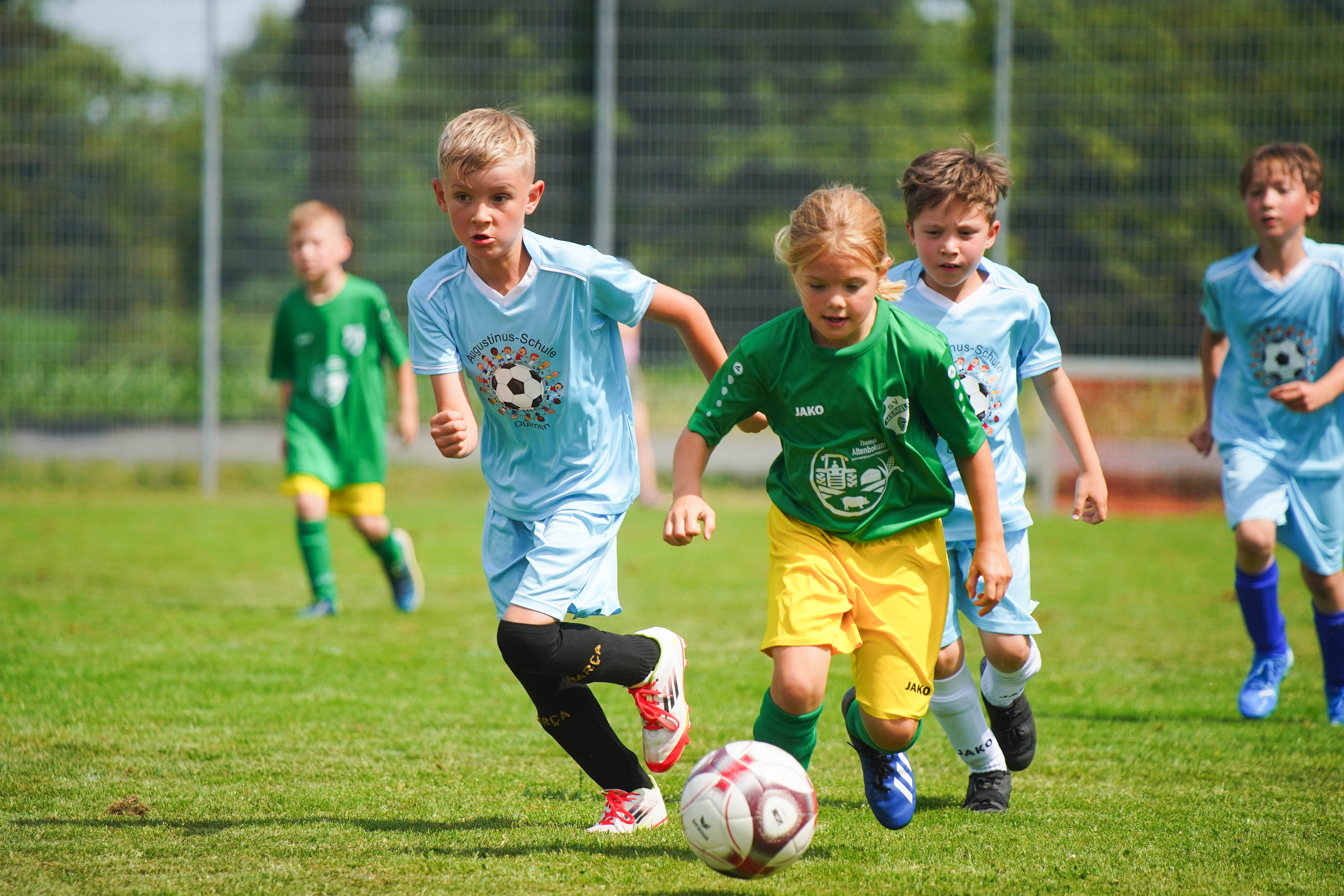 Am 22.06. fand bei hochsommerlichen Temperaturen erneut das traditionelle Grundschulturnier auf dem Gelände des DJK Rödder statt. Auch in diesem Jahr war der Grundschulverbund PGS/ KVG mit viel Engagement und Begeisterung vertreten. In den Jahrgängen 1/2 und 3/3 traten jeweils 4 Mannschaften des Verbundes an und zeigten tollen Einsatz, Teamgeist und Spielfreude.