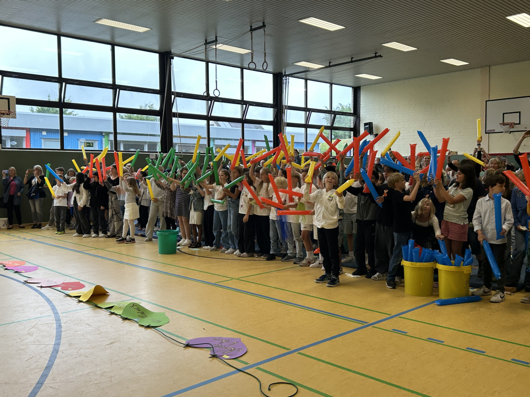 Der Tag begann mit einem Gottesdienst, den die Klasse 4d zusammen mit ihrer Relilehrerin Frau Saris vorbereitet hatte. In ruhiger, nachdenklicher Stimmung wurde zurückgeblickt auf vier gemeinsame Jahre voller Lernen, Lachen und Wachsen.