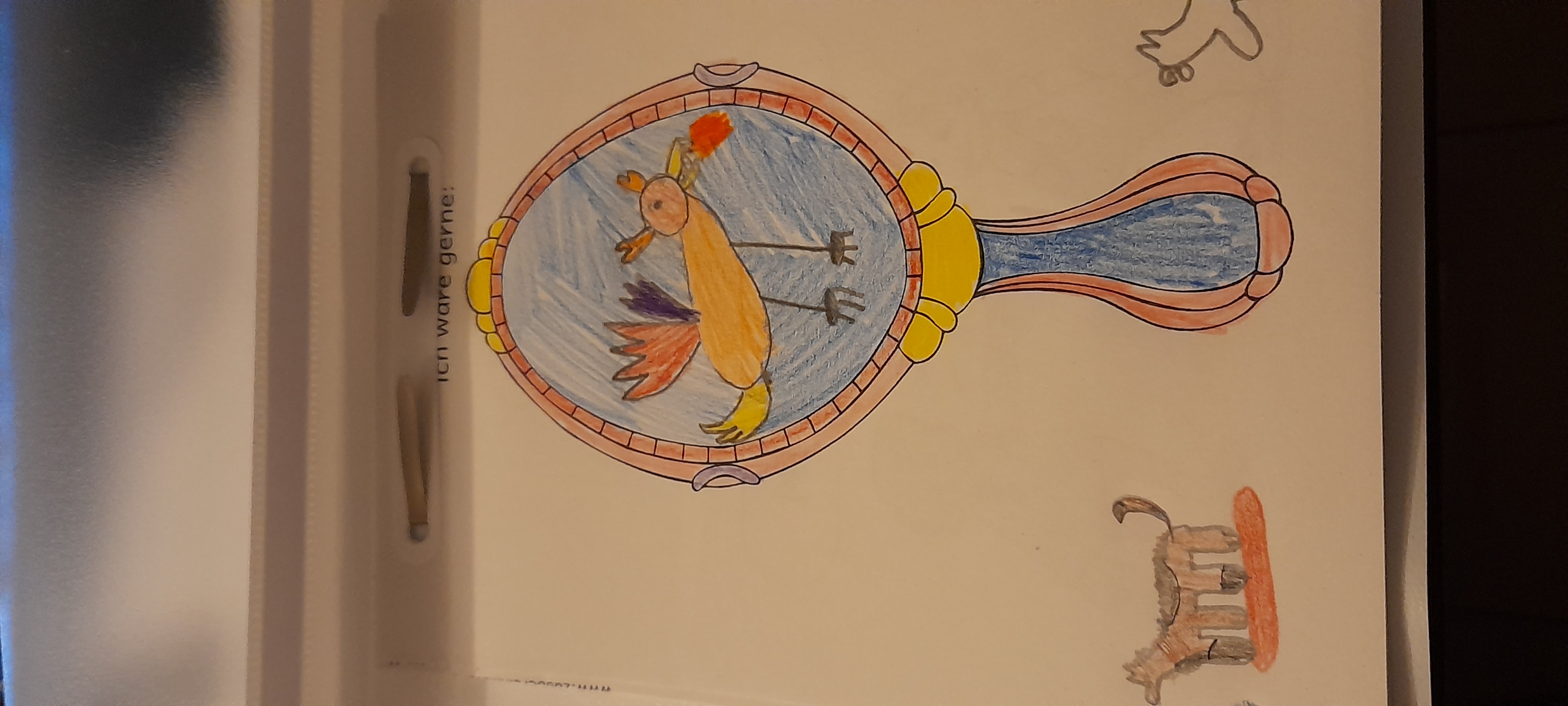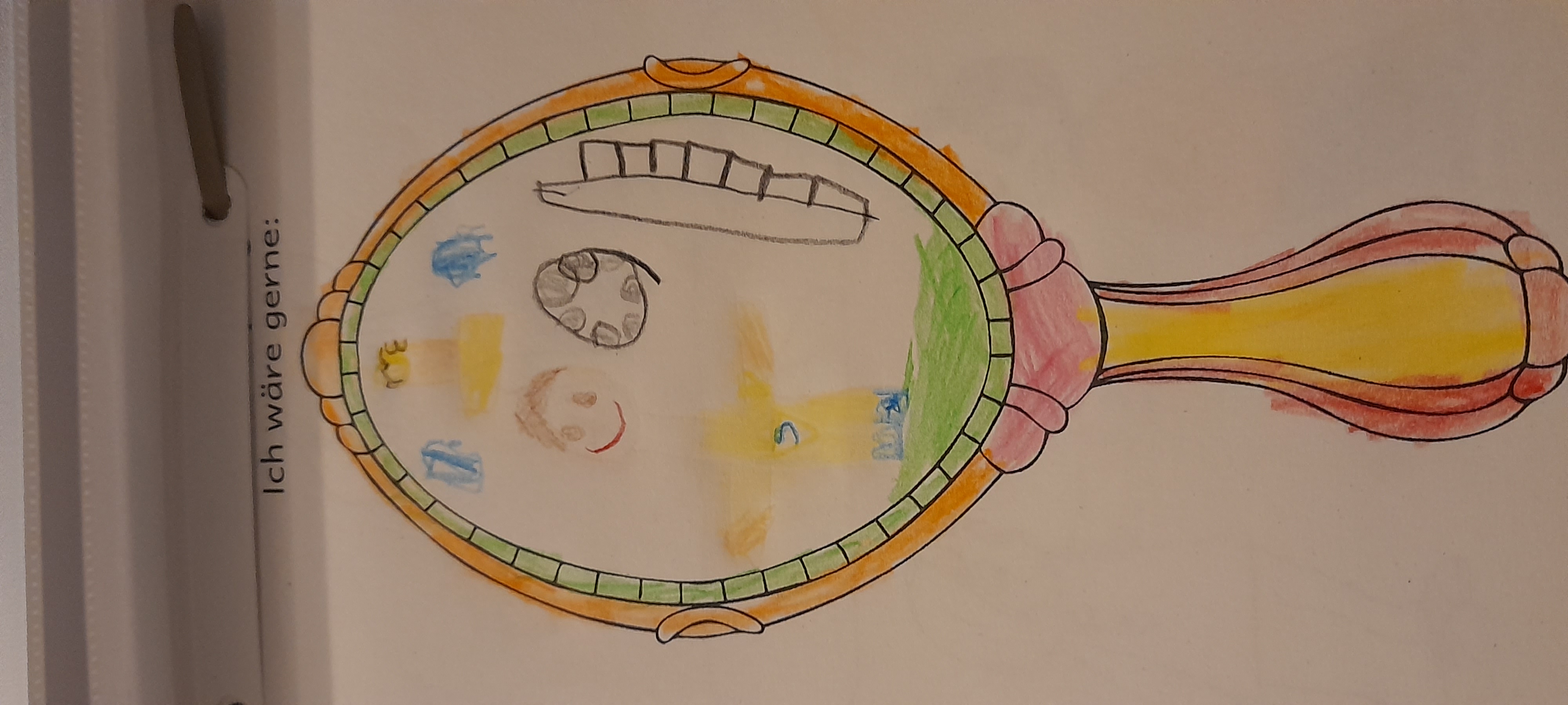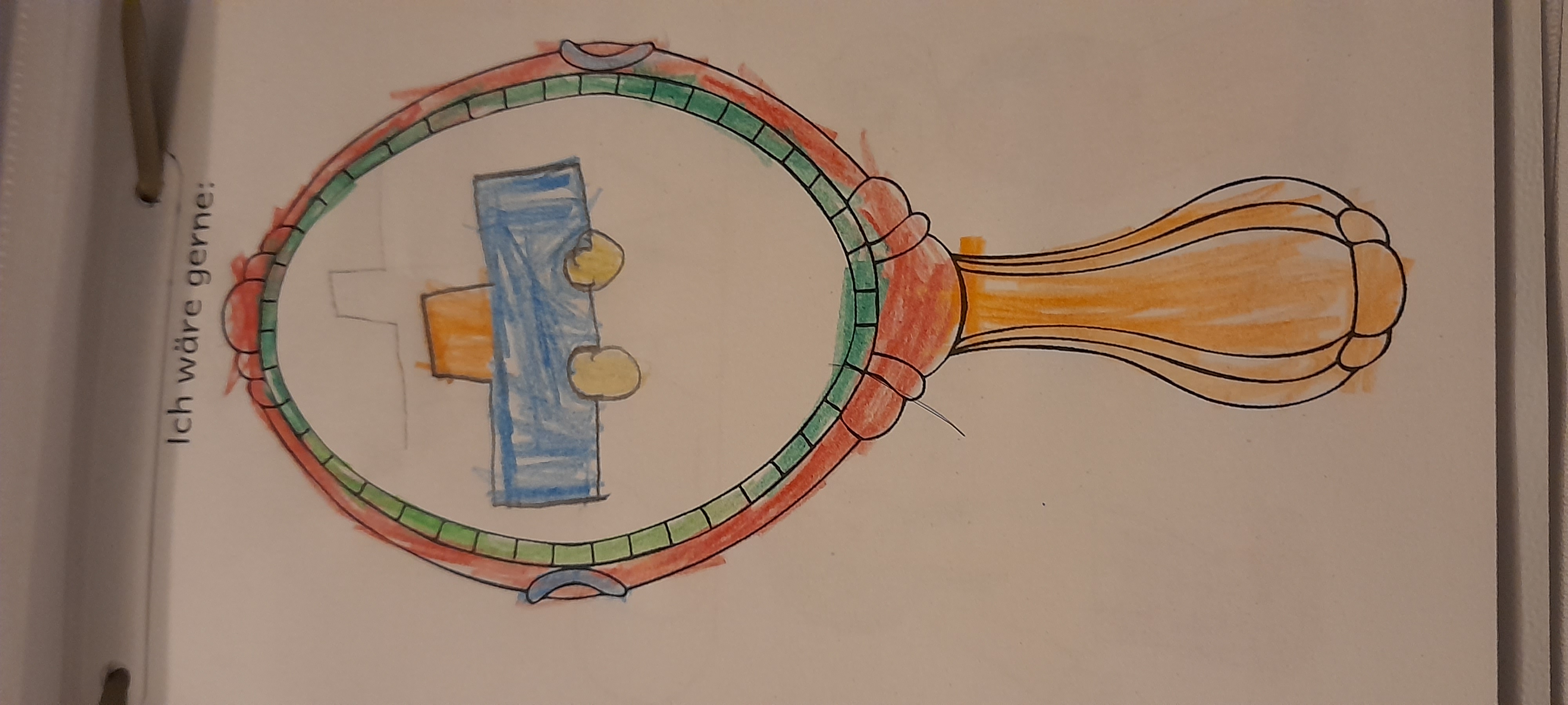 Die Klassen 1c hat im Religionsunterricht ein Bilderbuch gelesen: „Fantadu“ von Helme Heine. Es erzählt von einem Jungen mit viel Fantasie, der sich vorstellt, alles Mögliche sein zu können, zum Beispiel ein Tischbein. Anschließend malten die Kinder in einen Zauberspiegel, wer oder was sie einmal gern sein würden. Hier einige Bilder dazu…