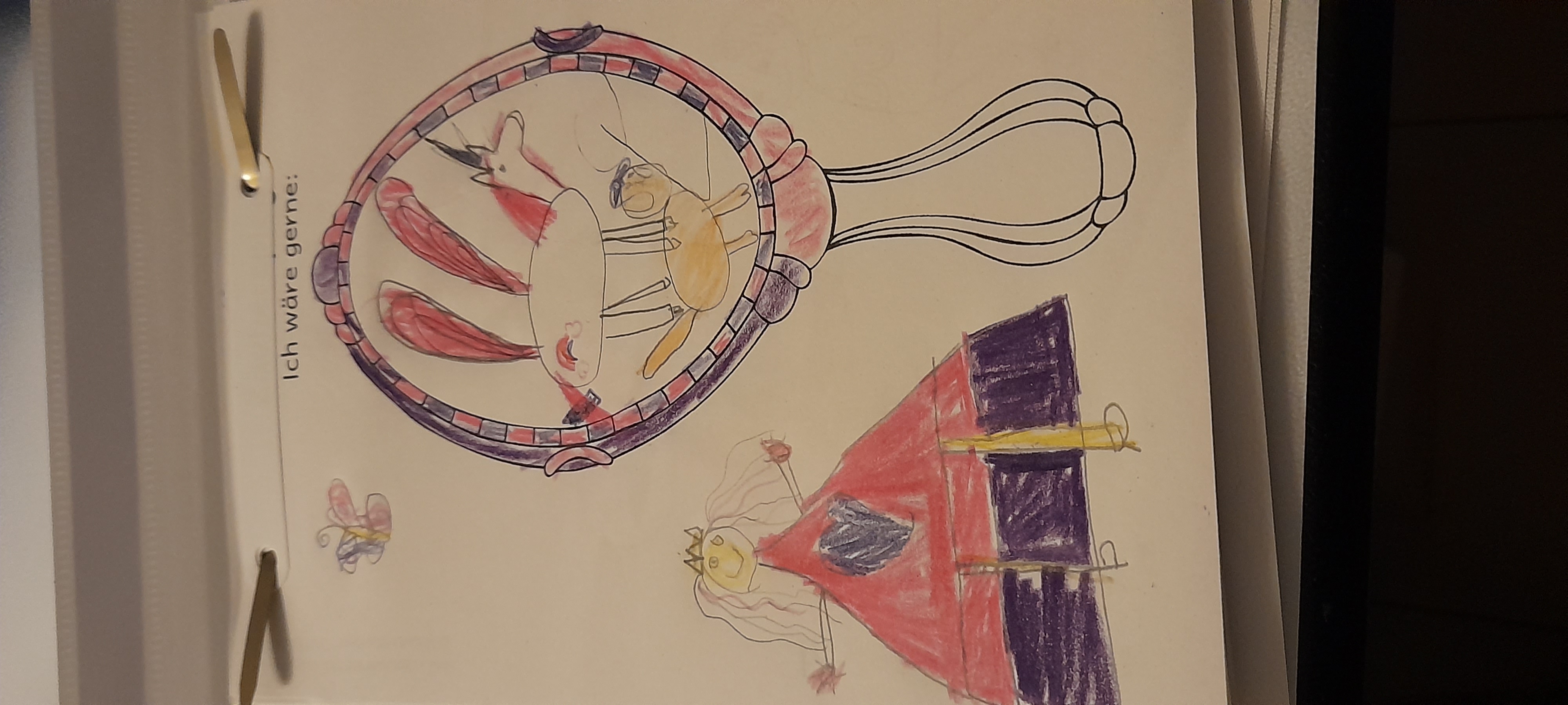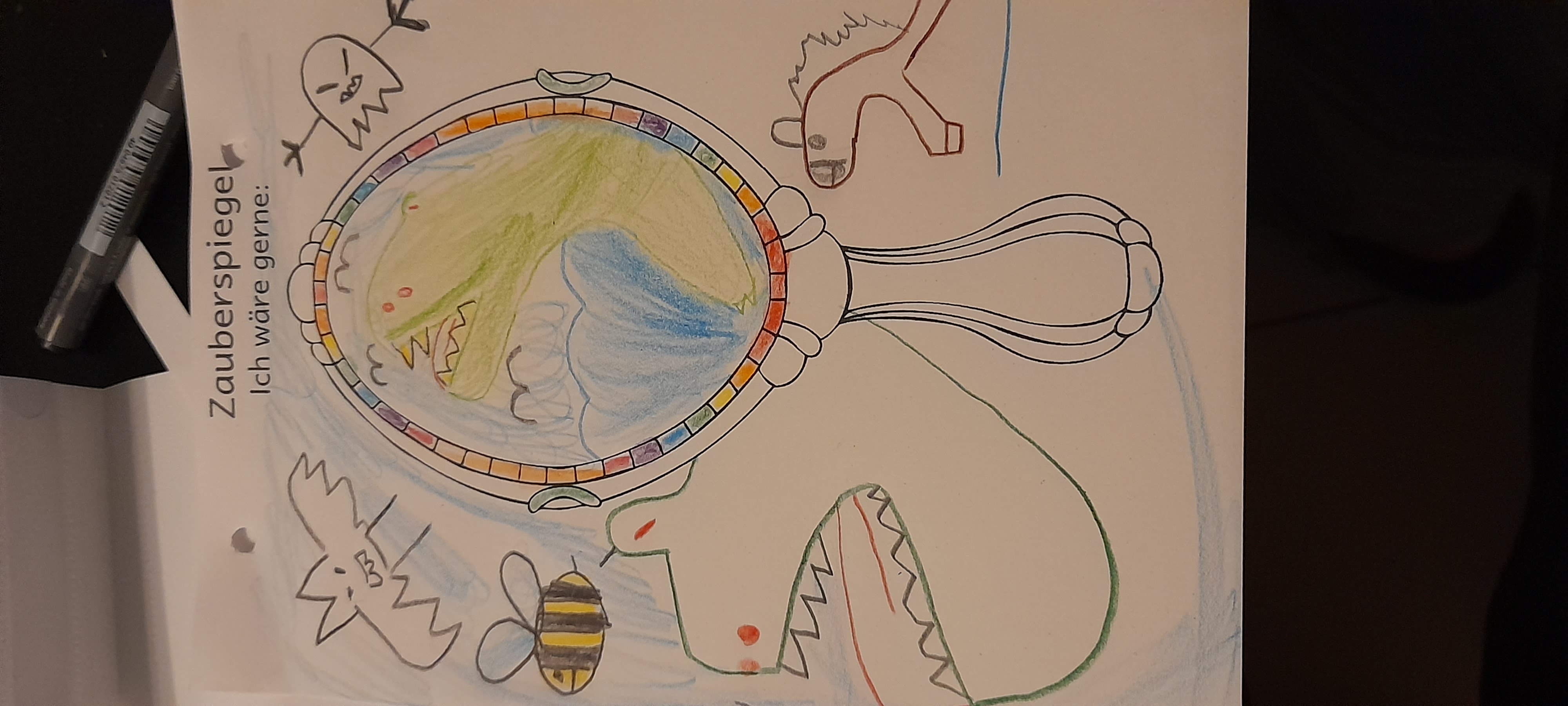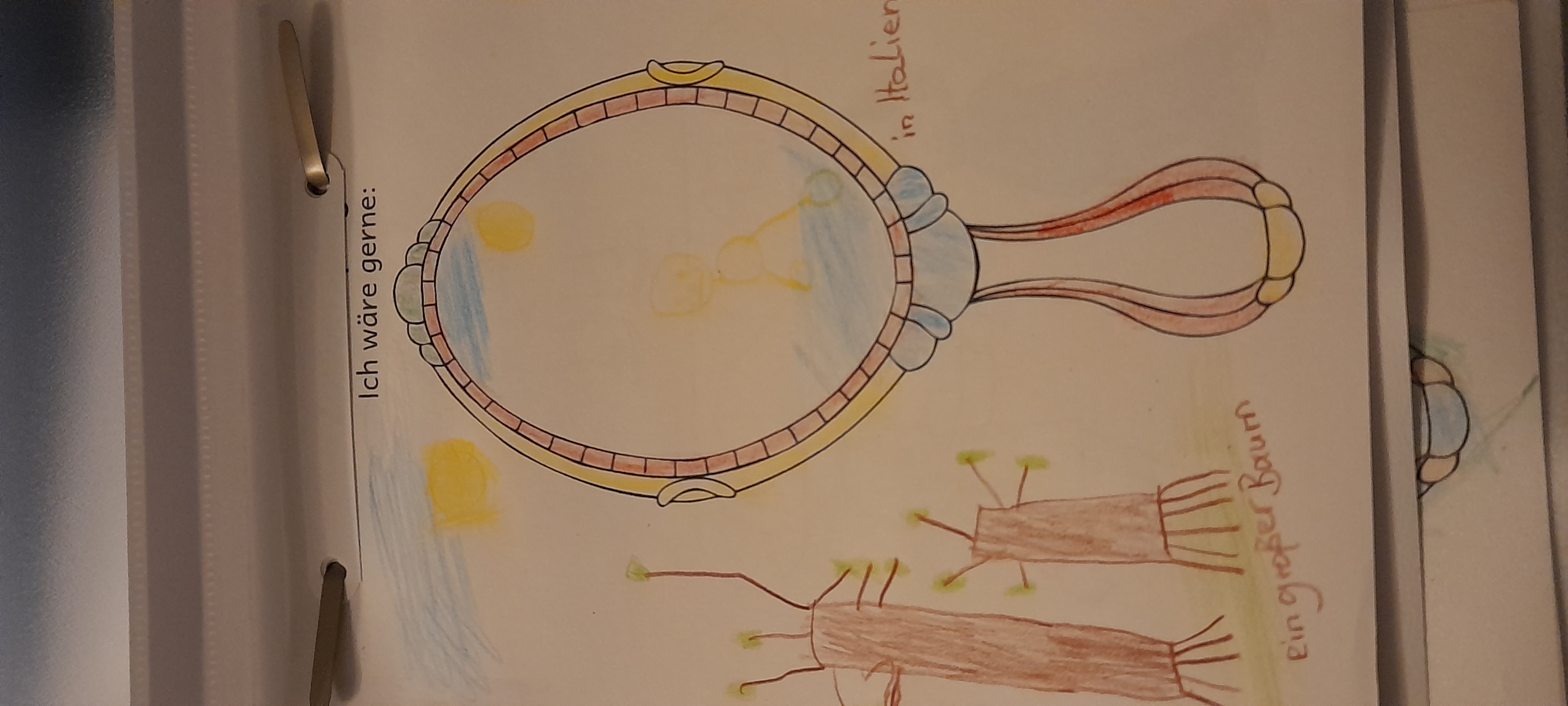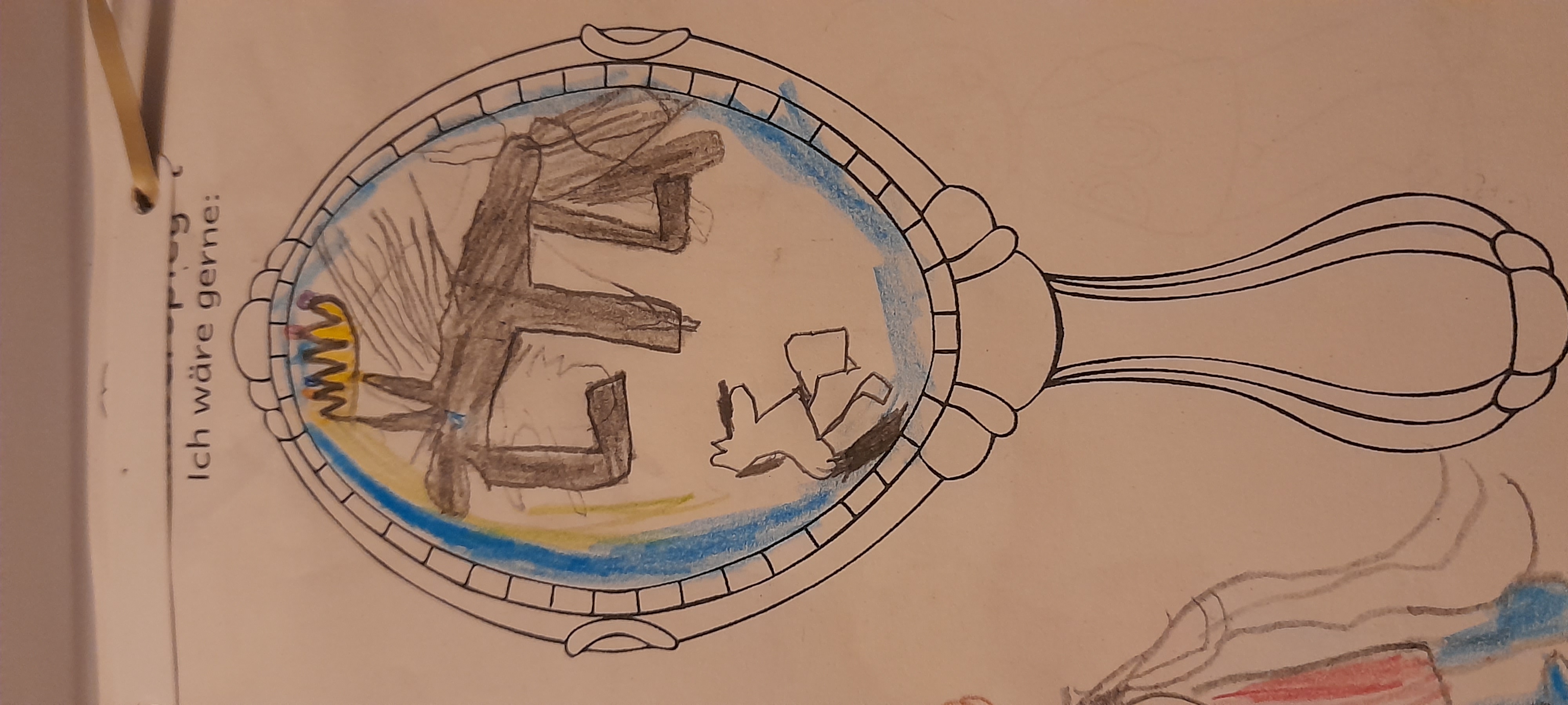 Die Klassen 1c hat im Religionsunterricht ein Bilderbuch gelesen: „Fantadu“ von Helme Heine. Es erzählt von einem Jungen mit viel Fantasie, der sich vorstellt, alles Mögliche sein zu können, zum Beispiel ein Tischbein. Anschließend malten die Kinder in einen Zauberspiegel, wer oder was sie einmal gern sein würden. Hier einige Bilder dazu…