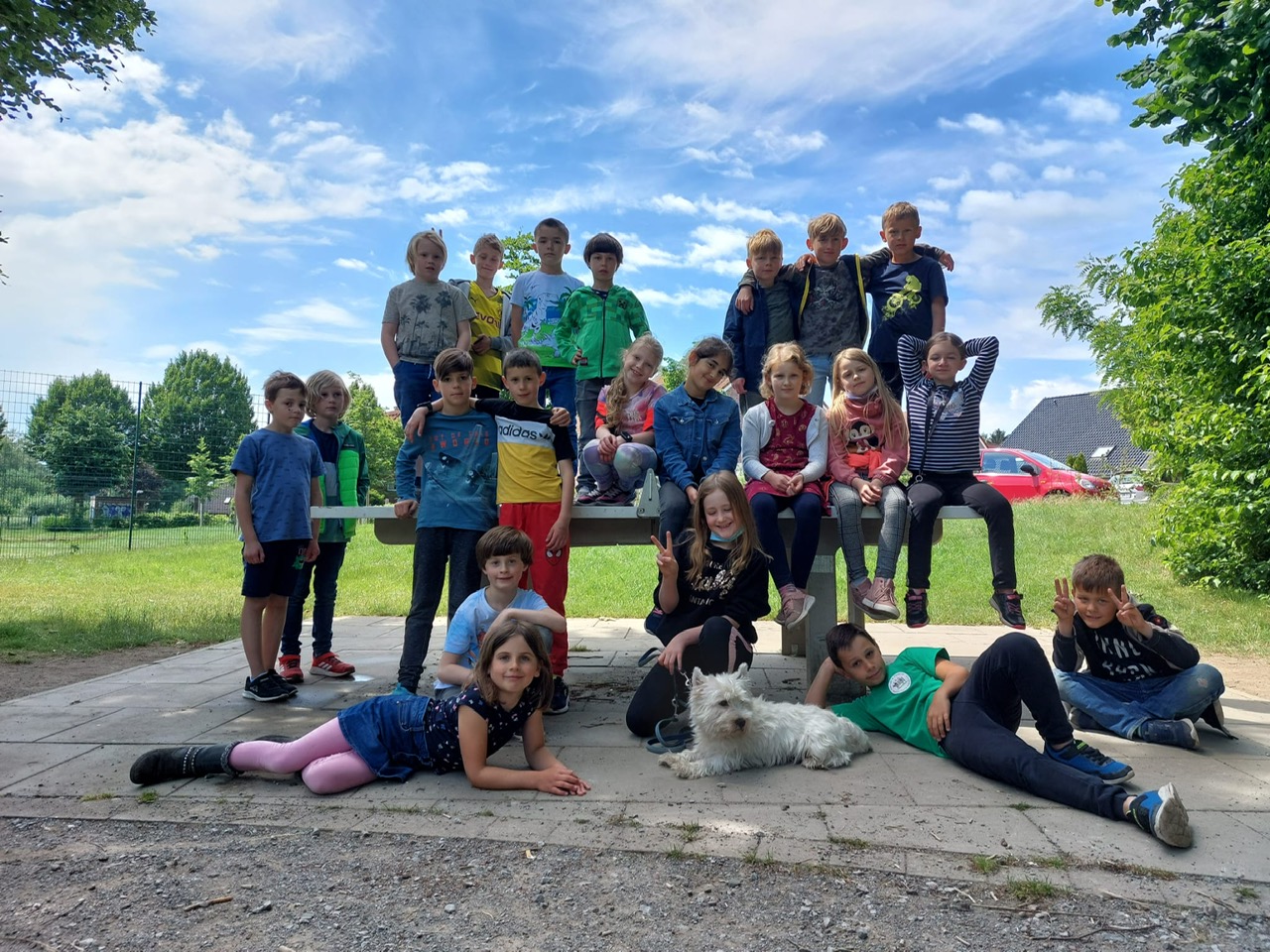 "Der Hund" ist das derzeitige Thema im Sachunterricht der Klasse 2b. Die Kinder informierten sich über die Haltungsbedingungen, die Abstammung des Hundes und den körperlichen Aufbau. Ganz handlungsorientiert am "lebenden Objekt" durften die Schülerinnen und Schüler heute mit einem Hund spazieren gehen und den Umgang mit Hunden erlernen. Wir hatten richtig viel Spaß!