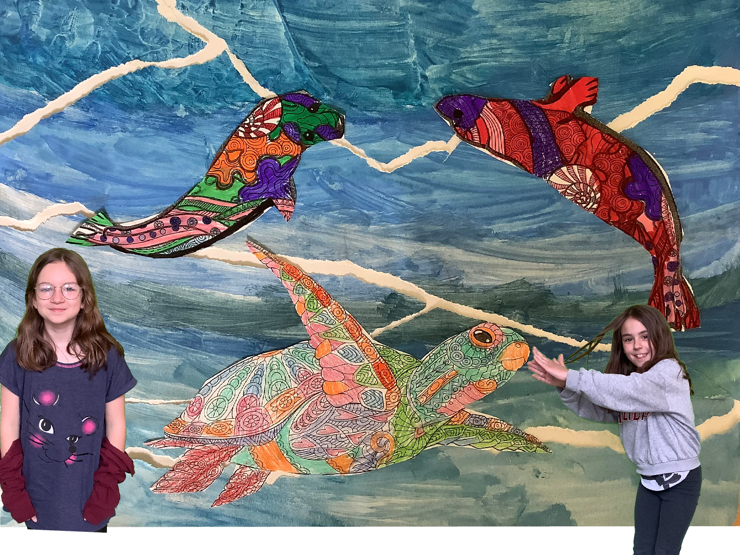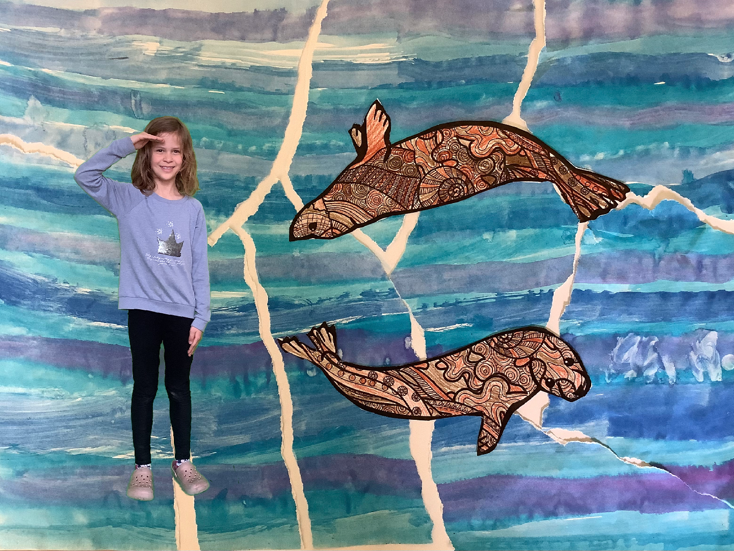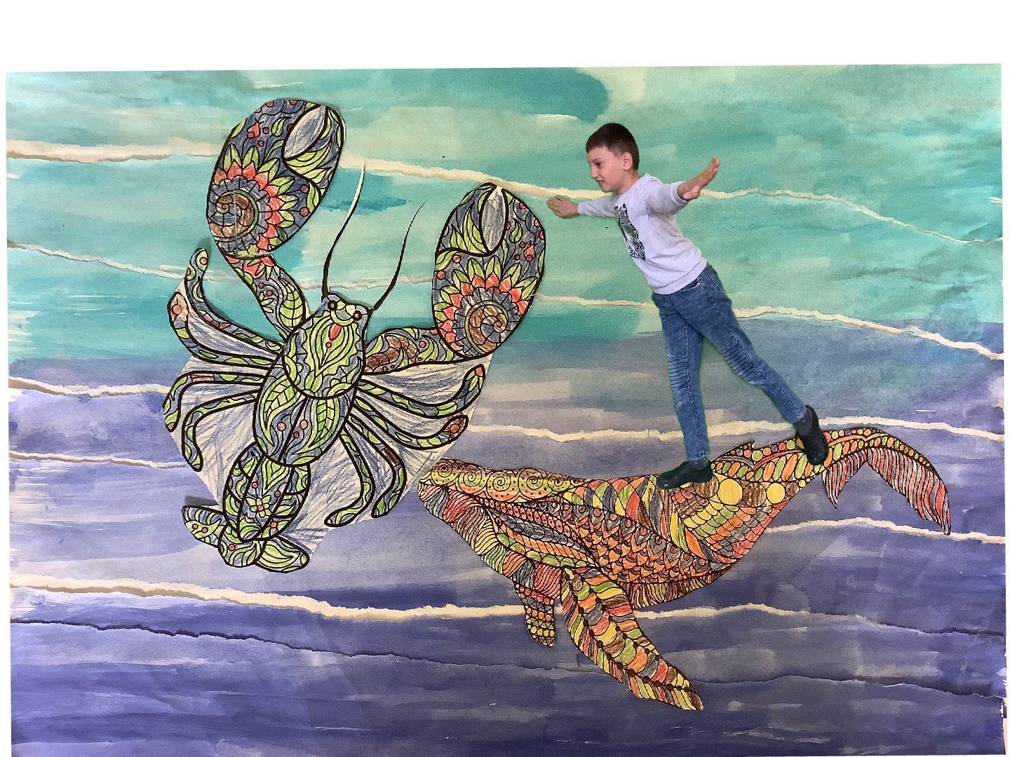 Im Kunstunterricht entstanden neben beeindruckenden Kunstwerken zum Thema „Meereswesen“ auch ein Nachbau der Titanic. Mit den Ipads wurden dann eifrig Fotos gemacht und gefilmt. Mit Hilfe eines Greenscreens und der dazugehörigen App konnten die Schülerinnen und Schüler dann in ihr eigenes Kunstwerk einzutauchen und z.B. ihren Meerswesen Auge in Auge gegenüberzustehen.
