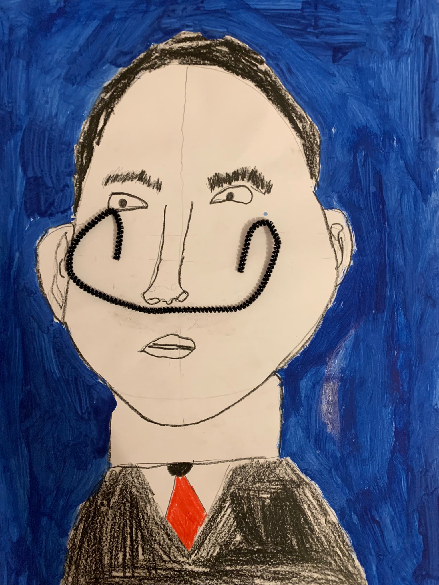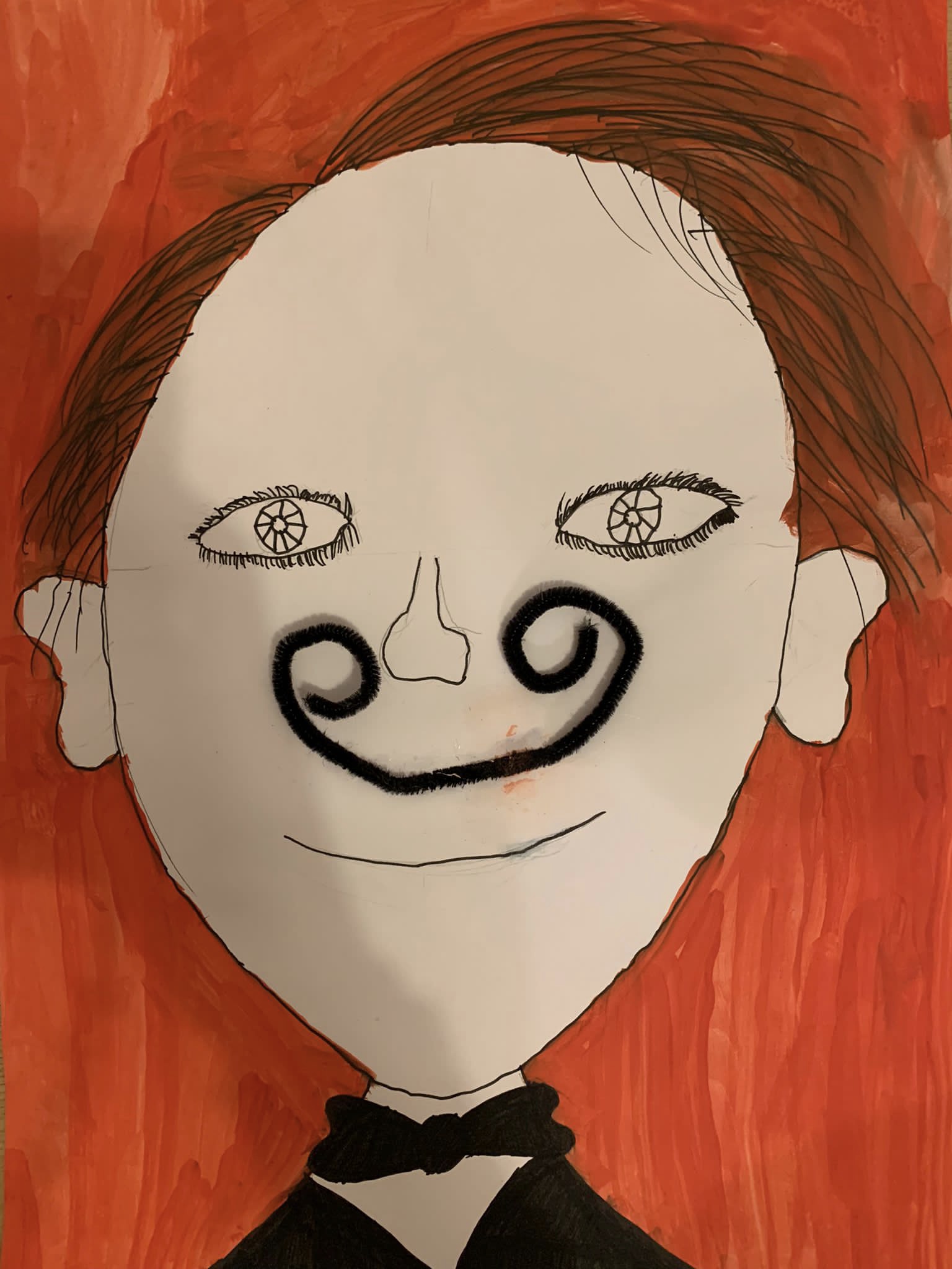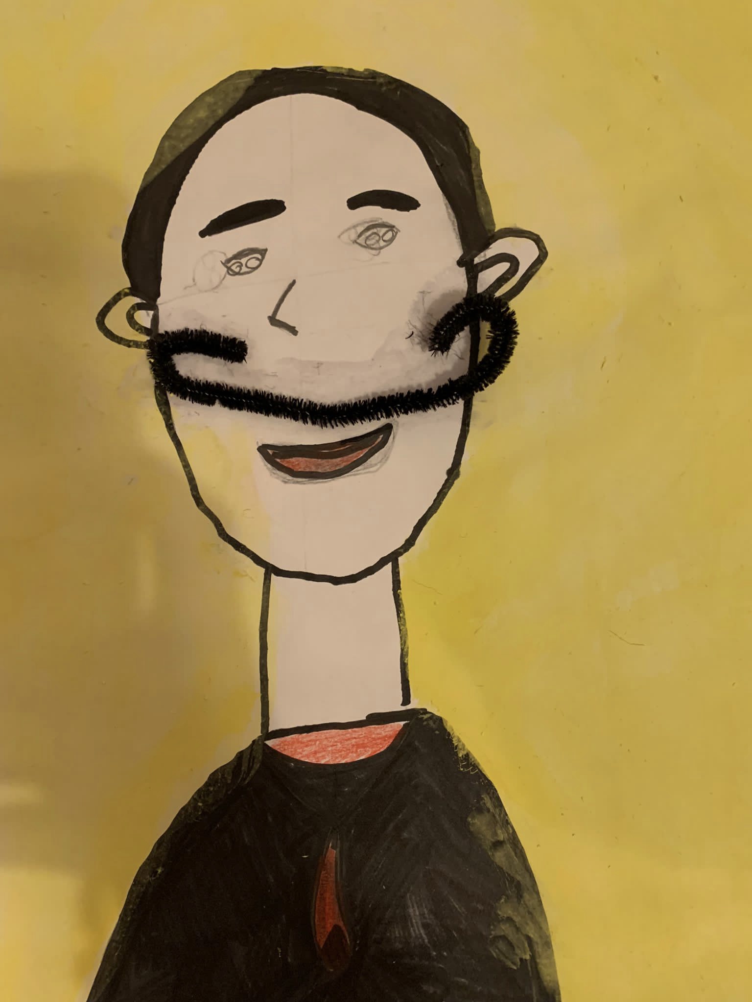 Und genau um diesen Schnurrbart ging es im ersten Bild der Kinder. Nachdem erarbeitet wurde, wie man ein gelungenes Portrait zeichnet, so dass die Augen nicht in der Stirn und der Mund nicht im Kinn sitzen, erstellten die Kinder mit schwarzem Fineliner Zeichnungen dieses berühmten Malers. Der Clou – sein Schnurrbart ist nicht einfach gezeichnet, sondern ein gebogener Pfeifenputzer.