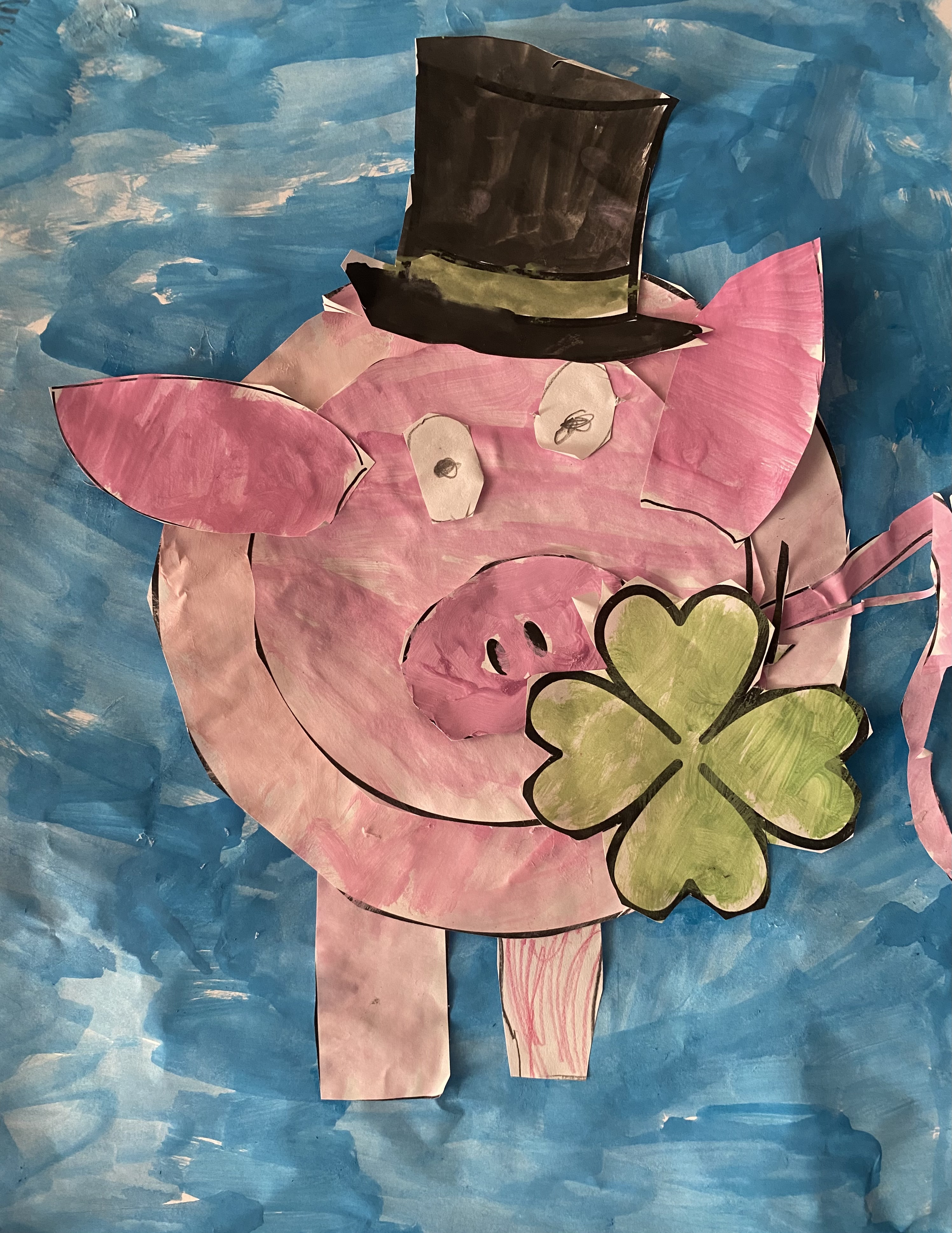 Zum neuen Jahr nur das Beste: Und das ist zu Beginn des Jahres im Kunstunterricht der 2a ein schönes rundes Glücksschweinchen. In Deutschland werden zu Neujahr vor allem Schweine aus Marzipan als Glücksbringer verschenkt, meistens mit einem Cent oder vierblättrigen Kleeblatt im Maul – sicher ist sicher. Mancherorts wird ein frisch gewaschenes Ferkel in einem Korb herumgereicht. Die 2a hat sich lieber Glücksschweine gemalt. Wir finden sie sehr gelungen!