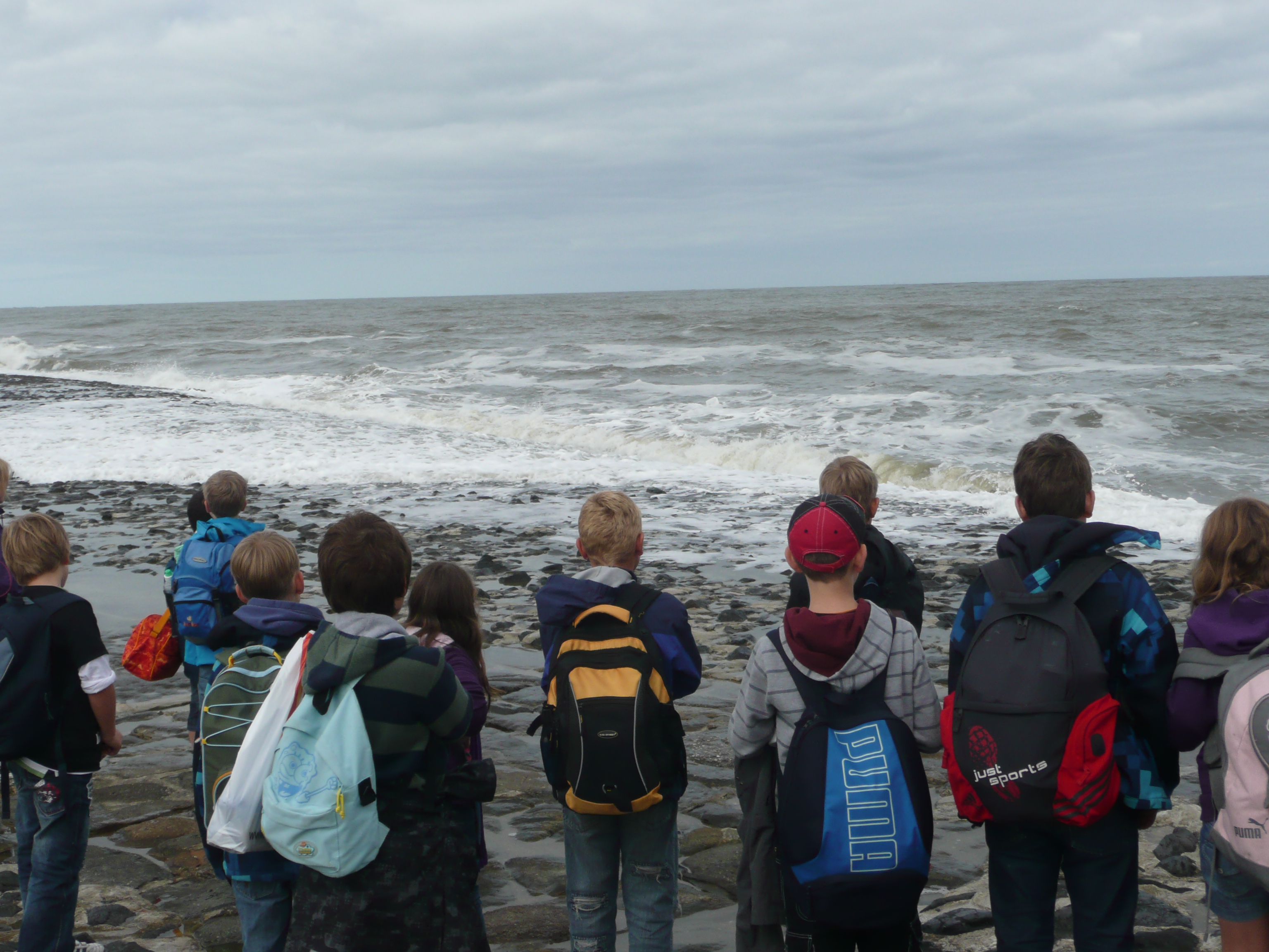 Am Morgen gab es zum Frühstück Brötchen mit Tee. Danach sind wir zum Strand gegangen, um zu schwimmen. Herr Voigt hat sich ins Wasser gestellt. Wir haben uns in einer langen Reihe neben ihn gestellt. Die Wellen schwappten an unseren Beinen. Herr Voigt ist immer weiter mit uns reingegangen. Das Wasser war ganz schön kalt. Nach einer Weile sind wir wieder raus gegangen. Als wir zu der Düne gehen wollten, gab es Windböen. Der Sand wehte an unsere Beine. Das tat ganz schön weh. Auf der Düne angekommen, haben wir uns umgezogen. Das war aber ganz schön schwierig, denn wenn man die Hose anziehen wollte, flatterten die Hosenbeine immer wieder im Wind.Nach dem Schwimmer sind wir zusammen ins Schullandheim gegangen, denn es gab Mittagessen. Nachdem alle aufgegessen hatten, sind wir nach draußen gegangen und haben gespielt. Dorothee und ich haben Fußball gespielt. Beim ersten Spiel hat Herr Pennekamp mitgespielt, beim zweiten Spiel hat Simon mitgespielt. Dann sind Dorothee, ich und noch zwei Kinder mit Herrn Voigt an den Strand gegangen, um Muscheln zu suchen. Wieder im Schullandheim angekommen, haben wir unsere Fundstücke im Speisesaal auf einem Tisch aufgebaut. Wie in einem Museum! Nach dem Abendessen sind wir mit den anderen Kindern noch einmal an den Strand gegangen. Als wir wieder da waren, war Dorothees Wellhornschnecke weg. Herr Voigt hat gesagt: „Wir kriegen die schon wieder!" Dieser Tag war sehr schön.