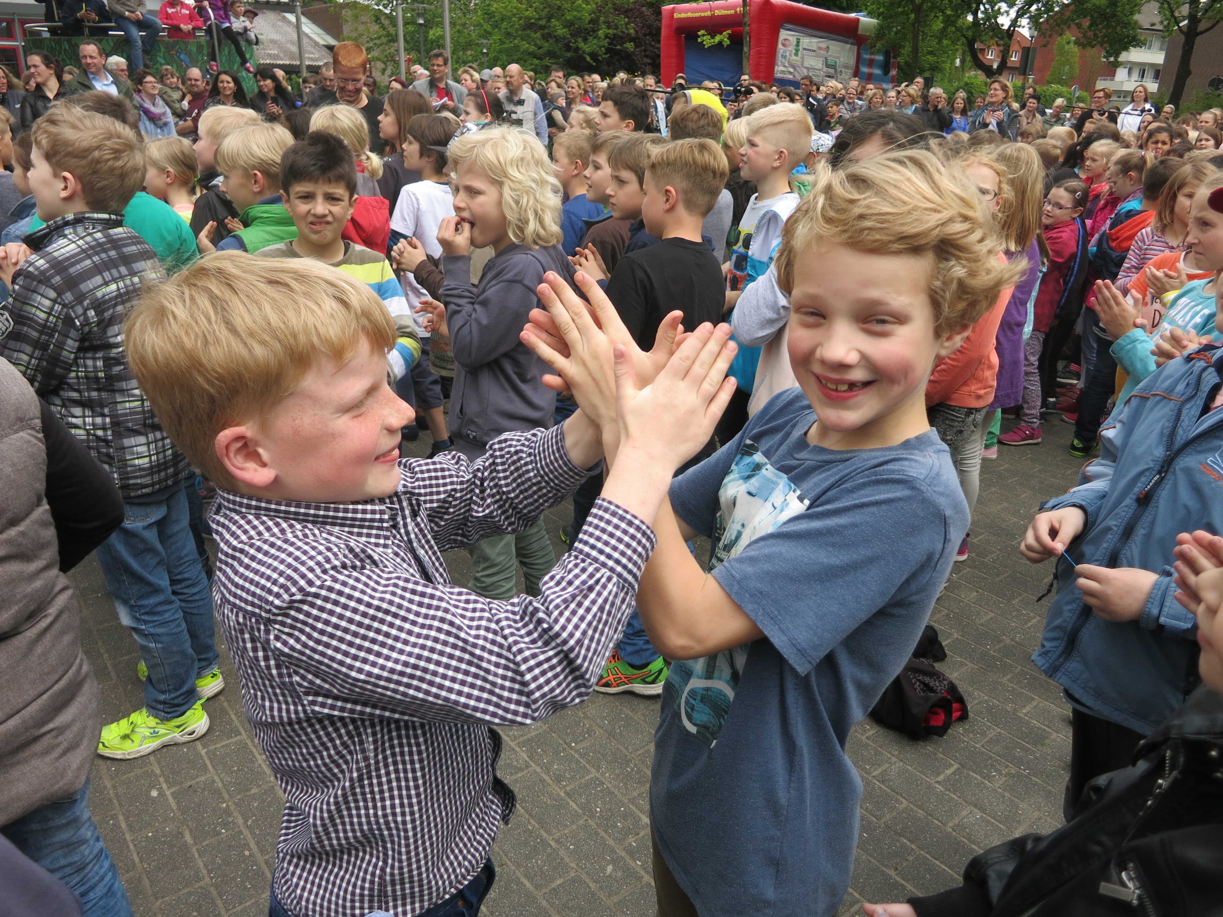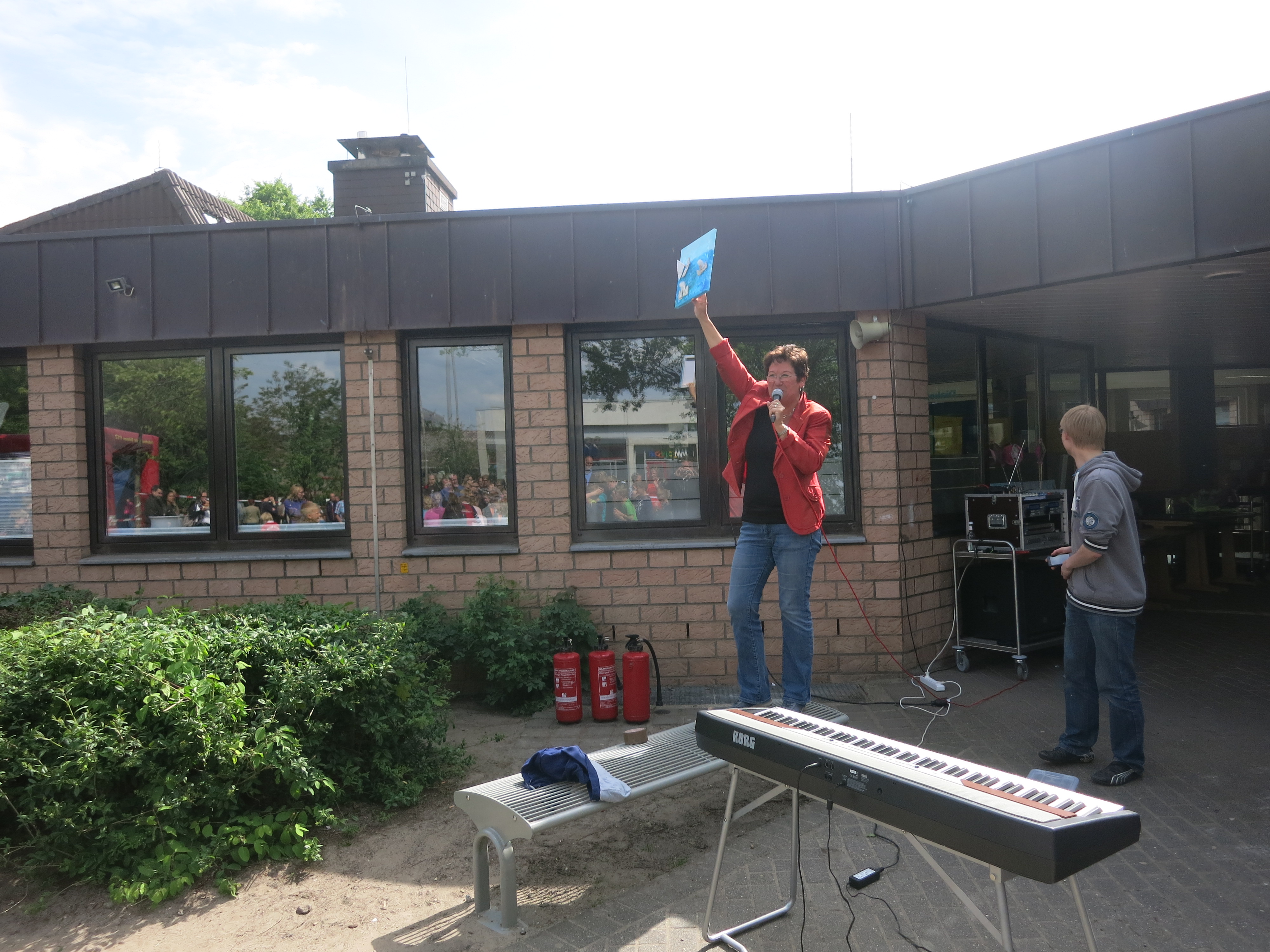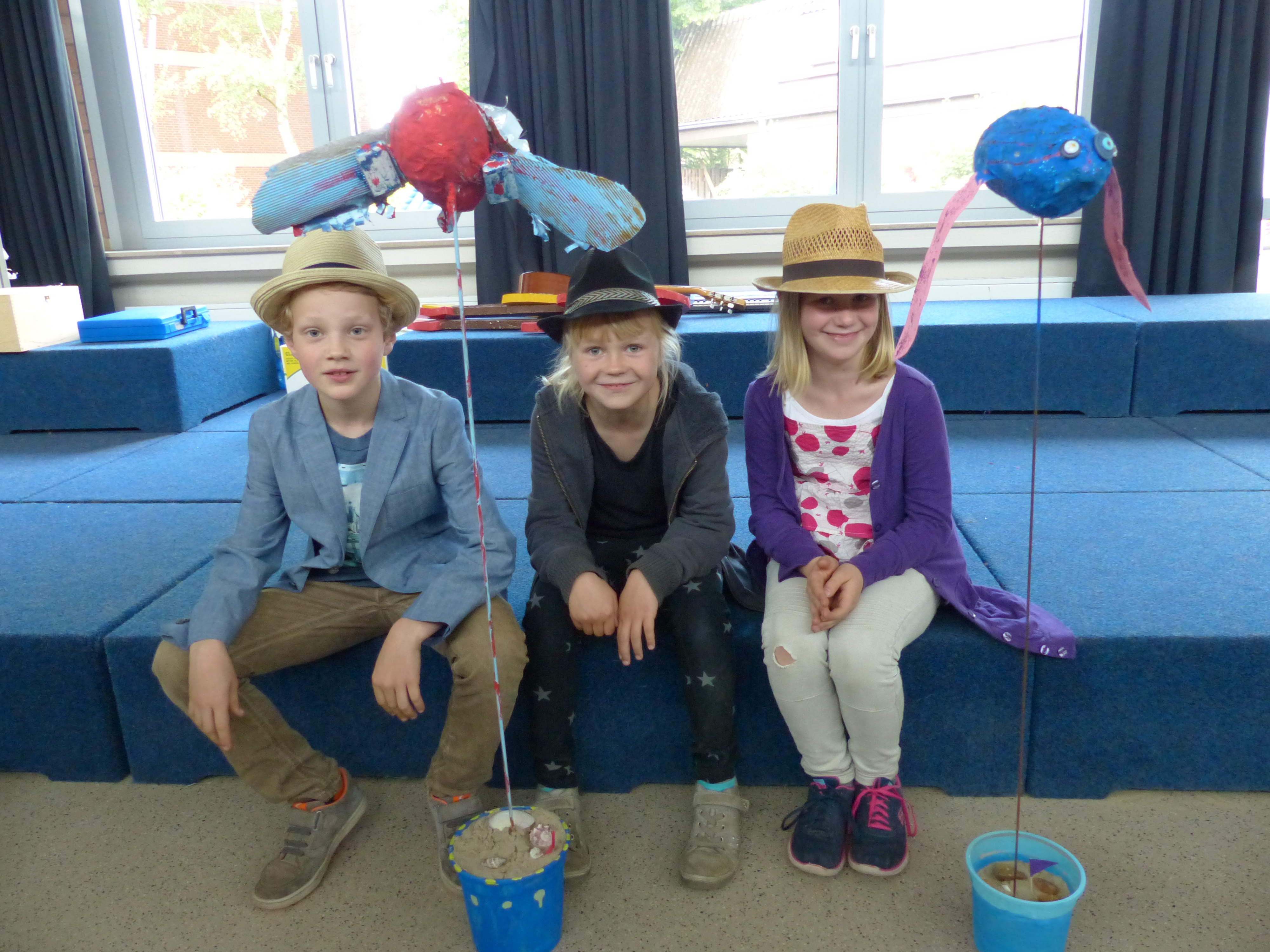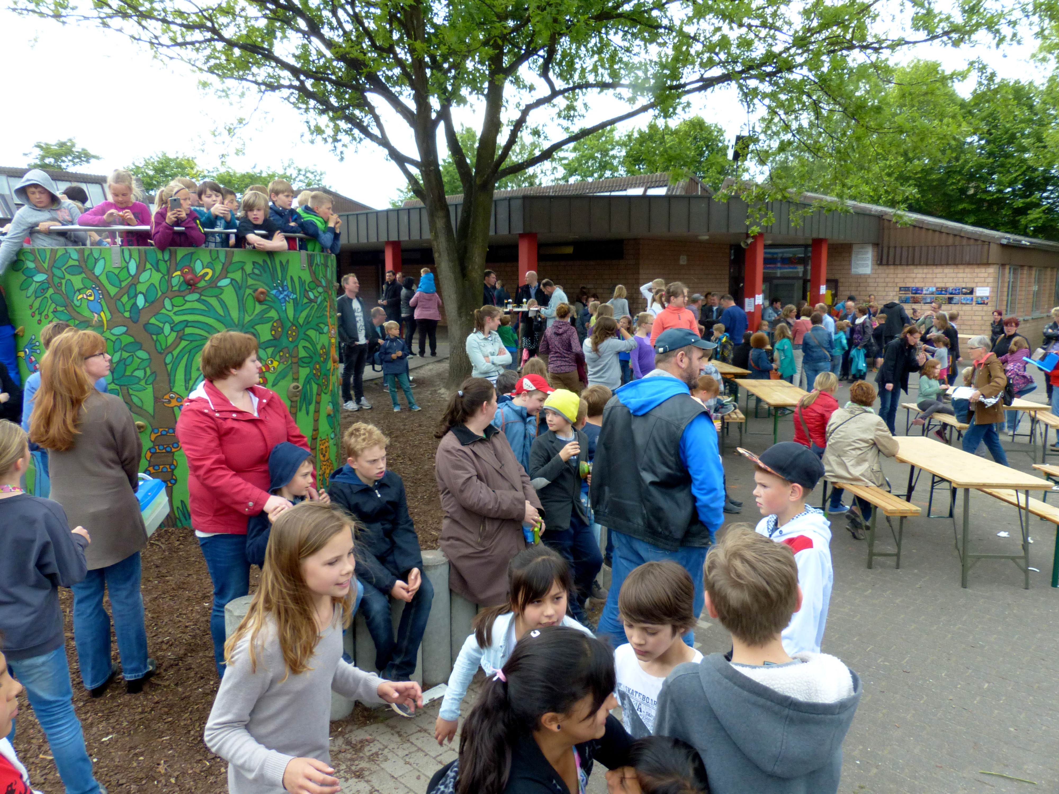 Im Jahr 2015 stand die Kunstausstellung unter dem Motto "Feuer, Wasser, Erde, Luft - die vier Elemente". Die Kinder haben dazu gemalt, gebastelt, modelliert und installiert. Unser damaliger Jahrespraktikant Herr Dittmann und Frau Wigger haben extra für die Kunstausstellung das "Lied der Elemente" geschrieben. Neben den Kunstwerken gab es noch jede Menge Mitmachangebote. So konnte man Windmühlen basteln, Pustebilder erstellen, Malen mit einem Strich wie Picasso, Steine bemalen usw.. Der Förderverein sorgte mit dem Grillstand und der Cafeteria für das leibliche Wohl.